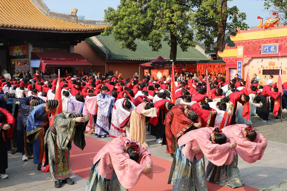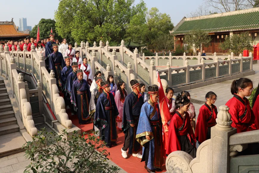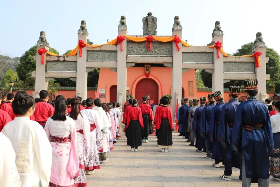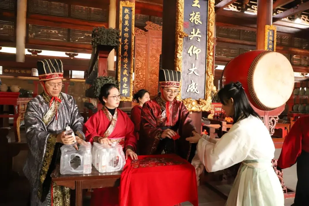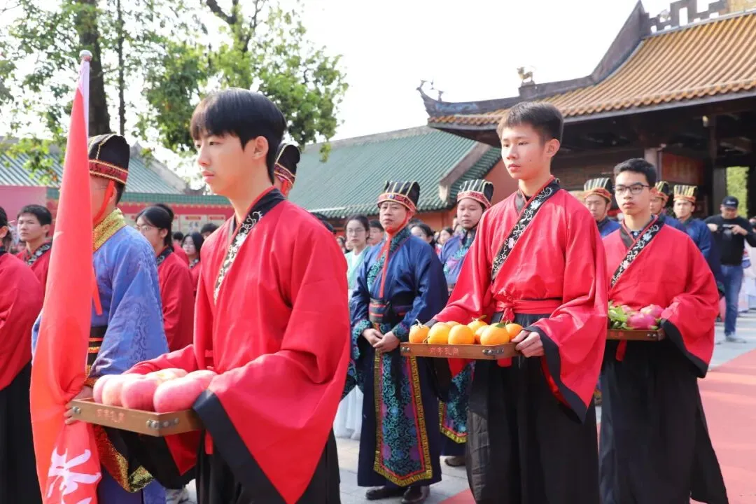 上午9时,晨曦初照,棂星门前,师生们着汉服肃立。随着司仪一声“告天”,仪式正式拉开帷幕。 在司仪与礼生的引导下,师生队伍依次穿过棂星门、状元桥、泮池、大成门,步入大成殿广场。一步一礼,一礼一诚,仿佛穿越千年,与圣贤对话,与梦想同行。
