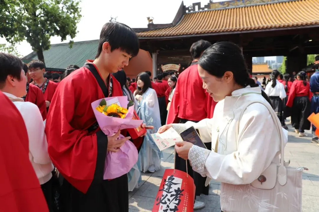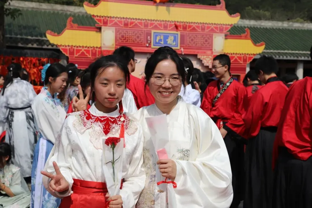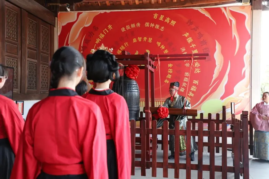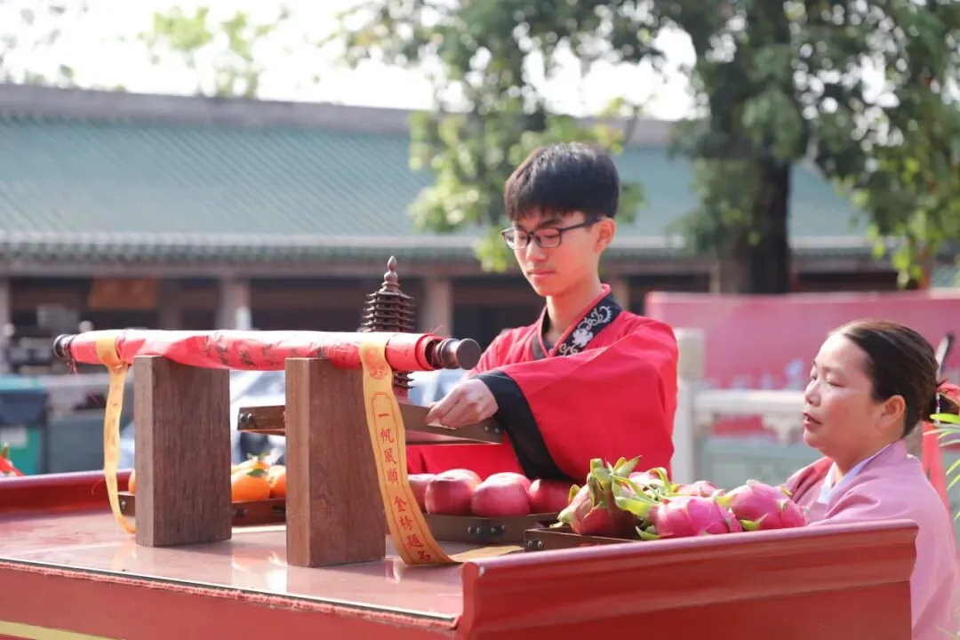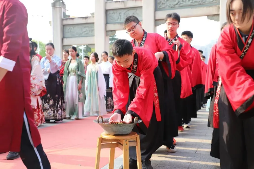 师生们在净手盆前净手,寓意洗去杂念、净心向学。随后踏上状元桥,走过青云石,象征着学子们步步高升、金榜题名。
