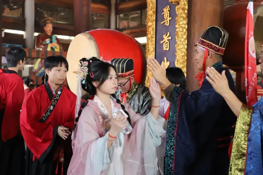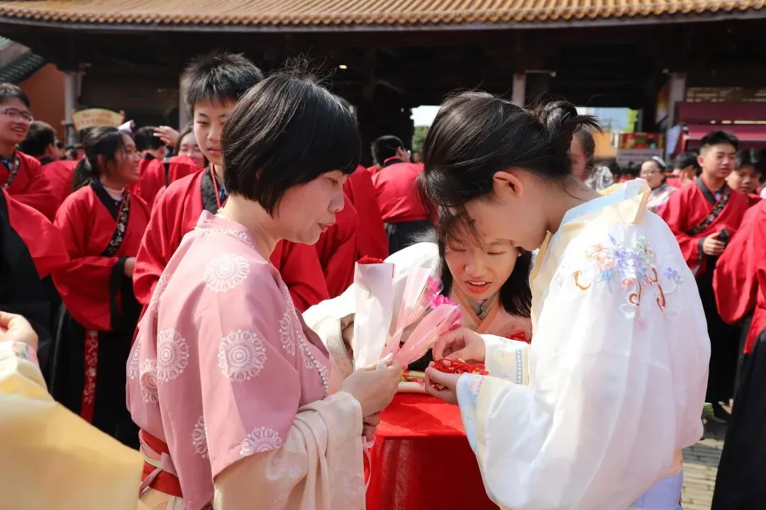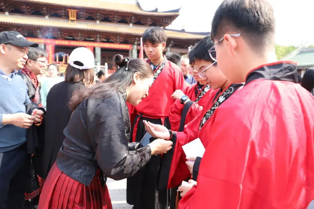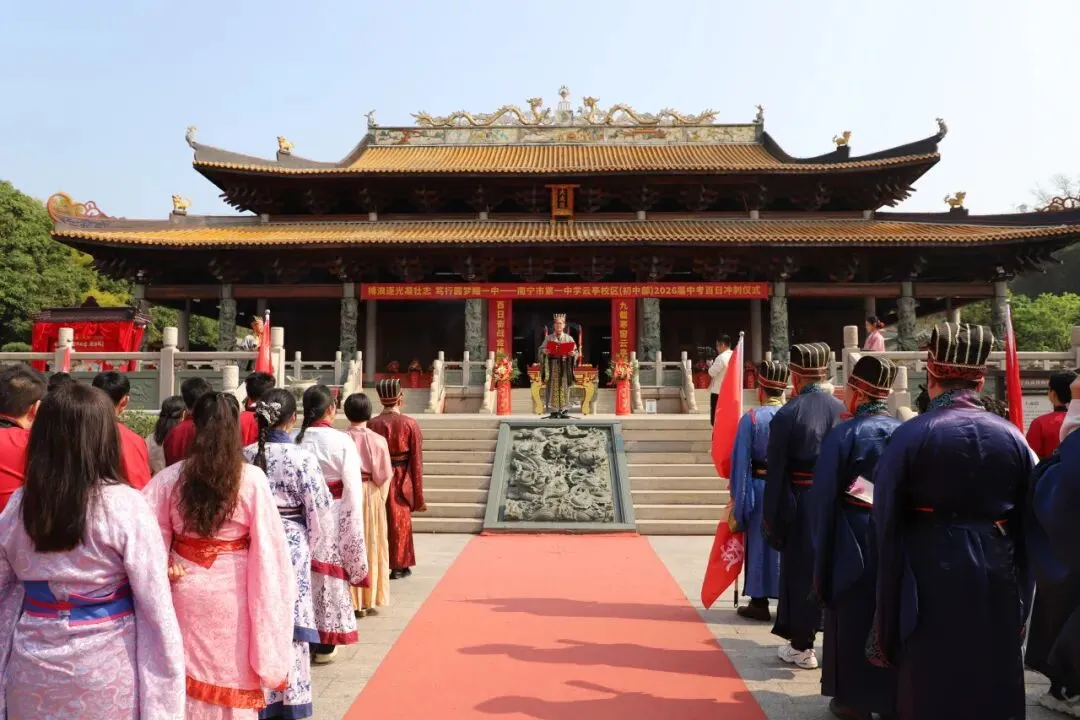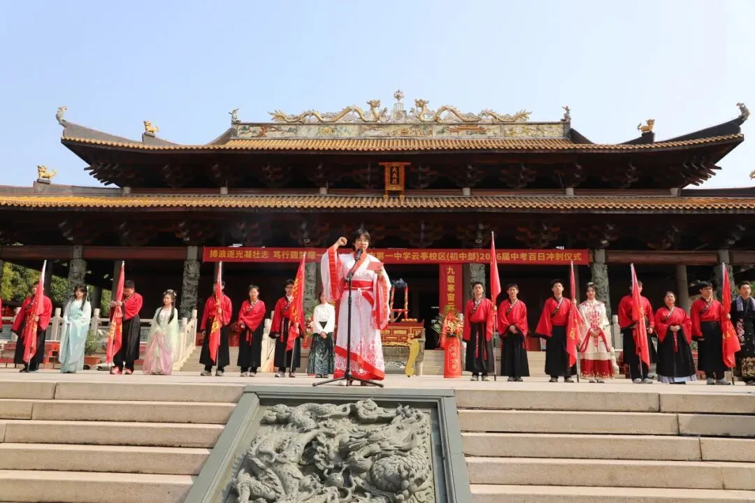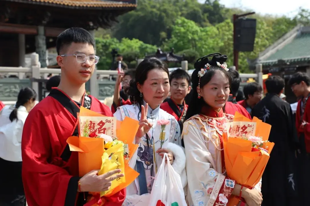 师生们在净手盆前净手,寓意洗去杂念、净心向学。随后踏上状元桥,走过青云石,象征着学子们步步高升、金榜题名。