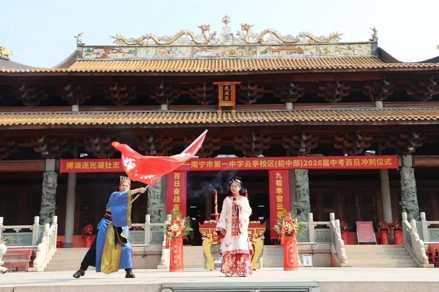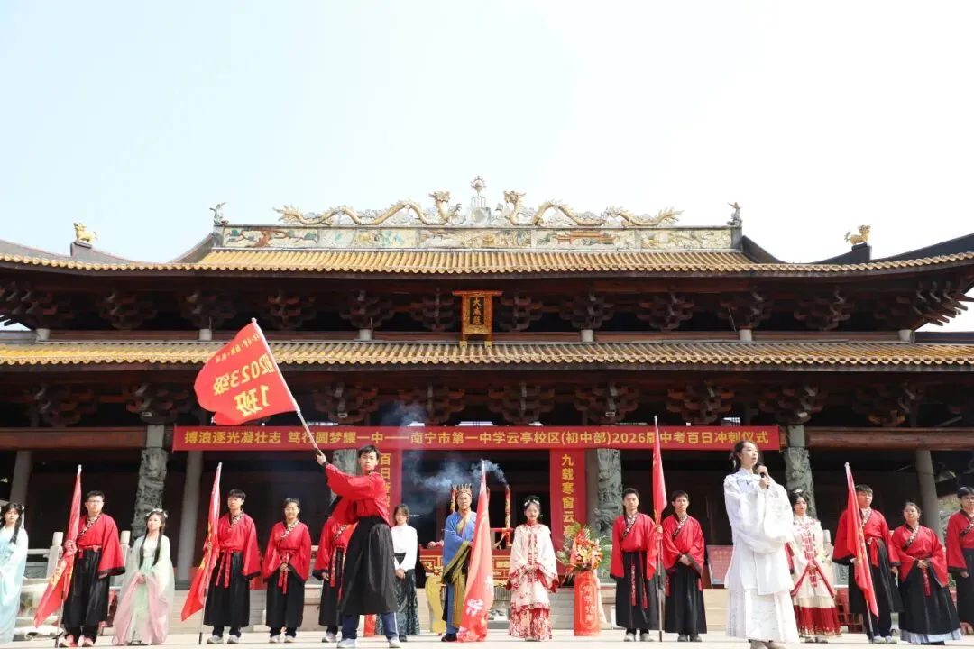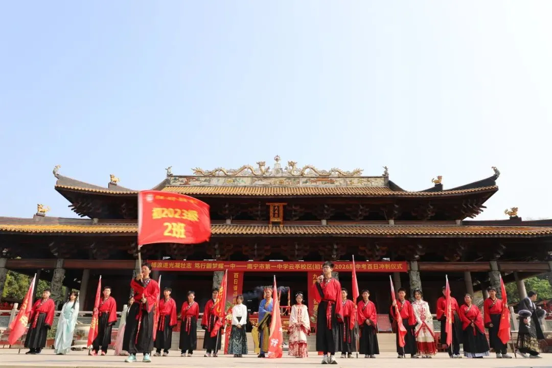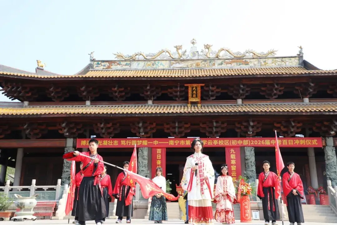 百日虽短,足以书写辉煌; 青春虽轻,亦可承载梦想。 愿南宁市第一中学云亭校区(初中部)2026届的每一位学子:以梦为马,不负韶华; 搏浪逐光,笃行圆梦;六月中考,金榜题名!