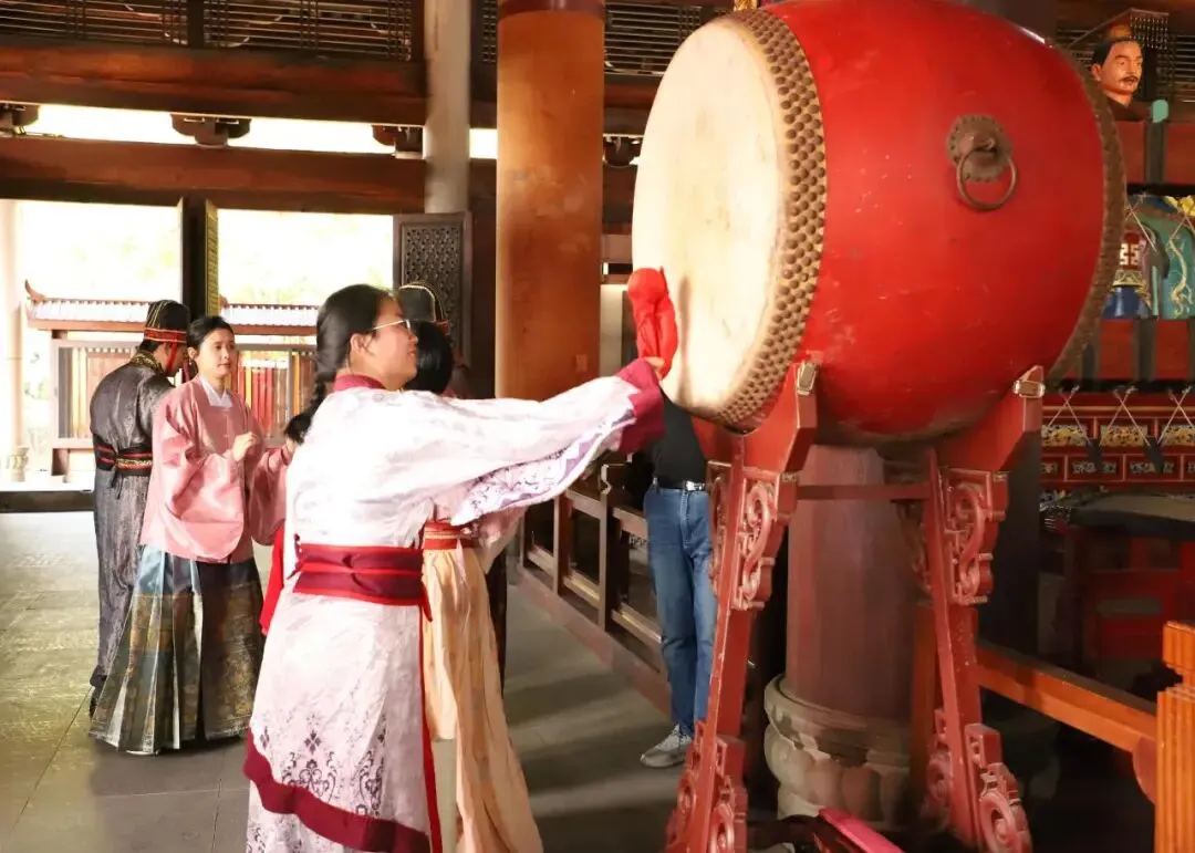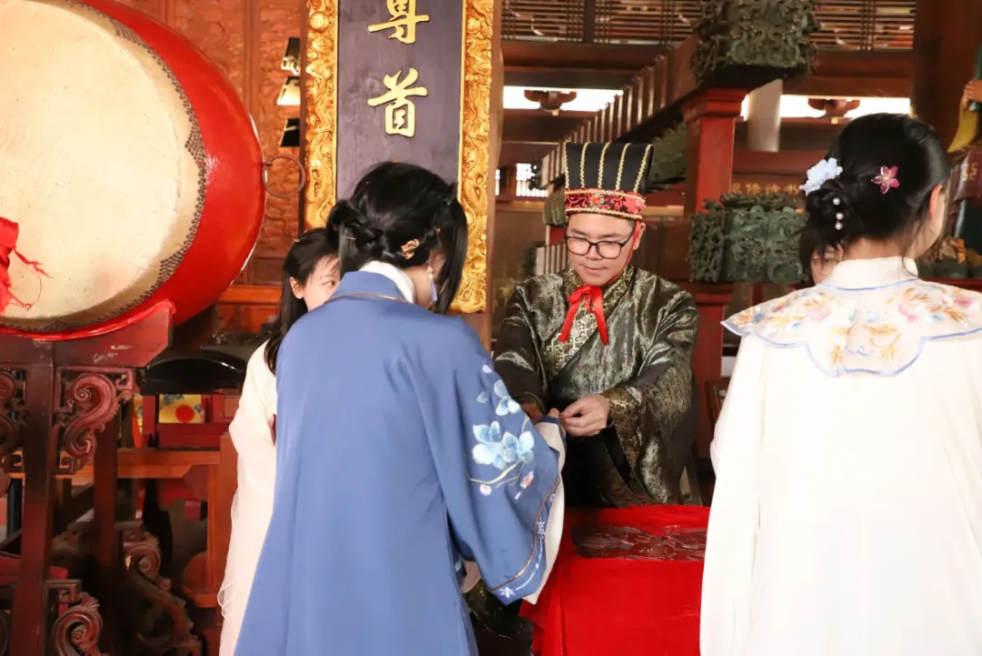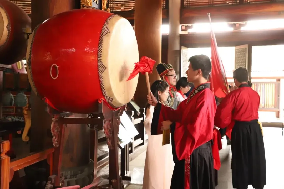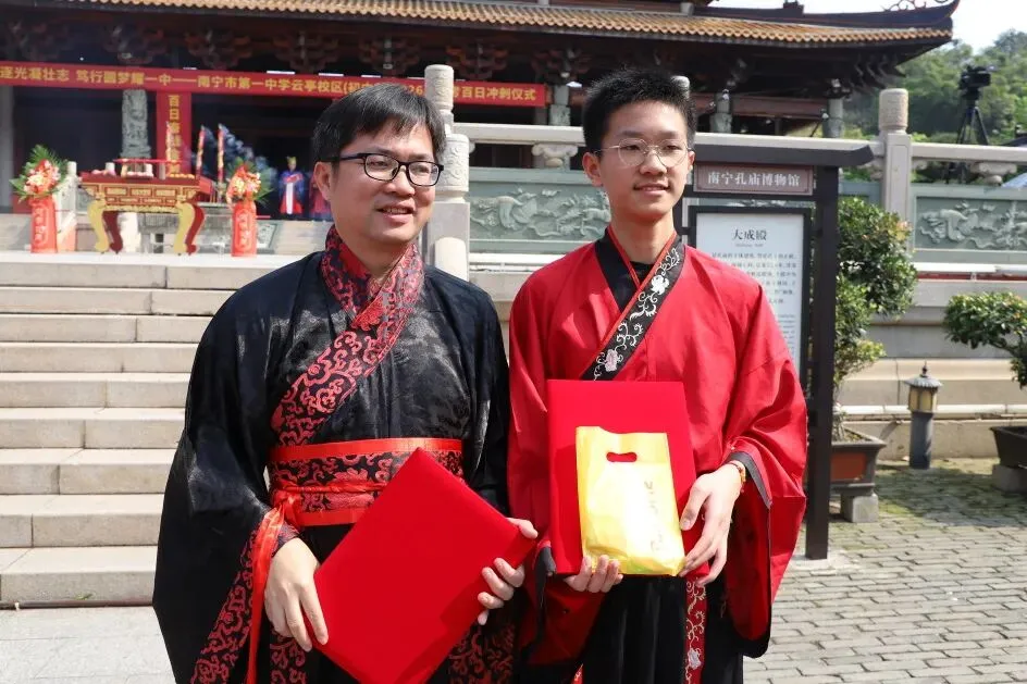 在大成殿内,师生依次击鼓鸣志,鼓声震震,心中理想愈发坚定。 每一位学子都收到了学校赠送的励志书签,寄托着最真诚的祝福与期许。