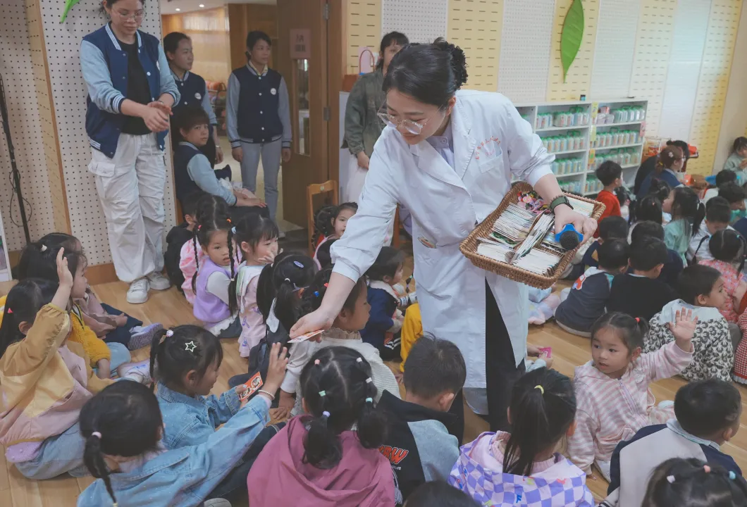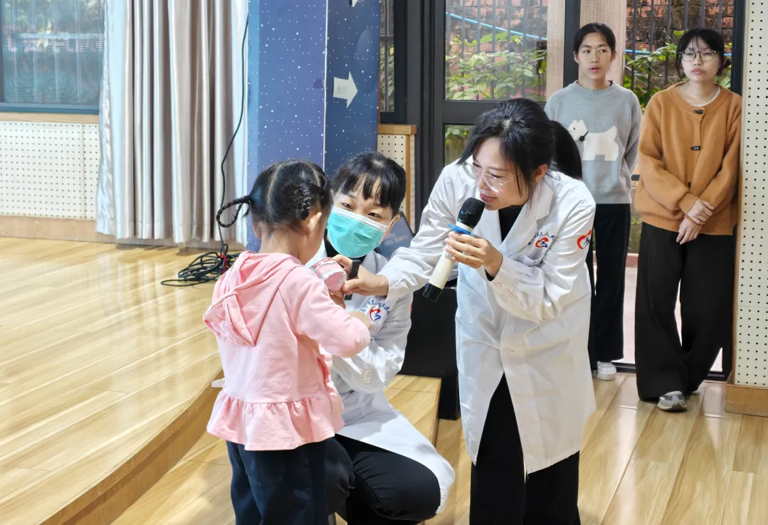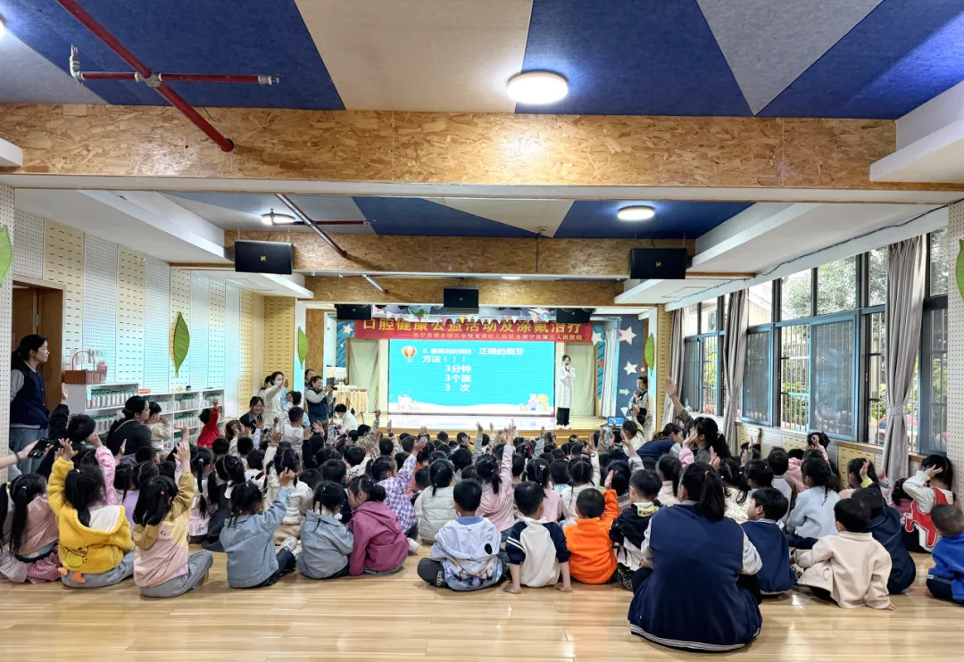 现场设置有奖问答环节,引导孩子们积极分辨对牙齿有益与有害的食物,在互动中牢记护牙常识。医护人员借助牙齿模型,手把手示范正确刷牙方法,带领孩子们齐唱“小小牙刷手中拿,张开我的小嘴巴,上面牙齿往下刷,下面牙齿往上刷……”刷牙歌,让孩子们在趣味儿歌中掌握规范刷牙动作,并邀请小朋友上台演示,巩固学习成果。