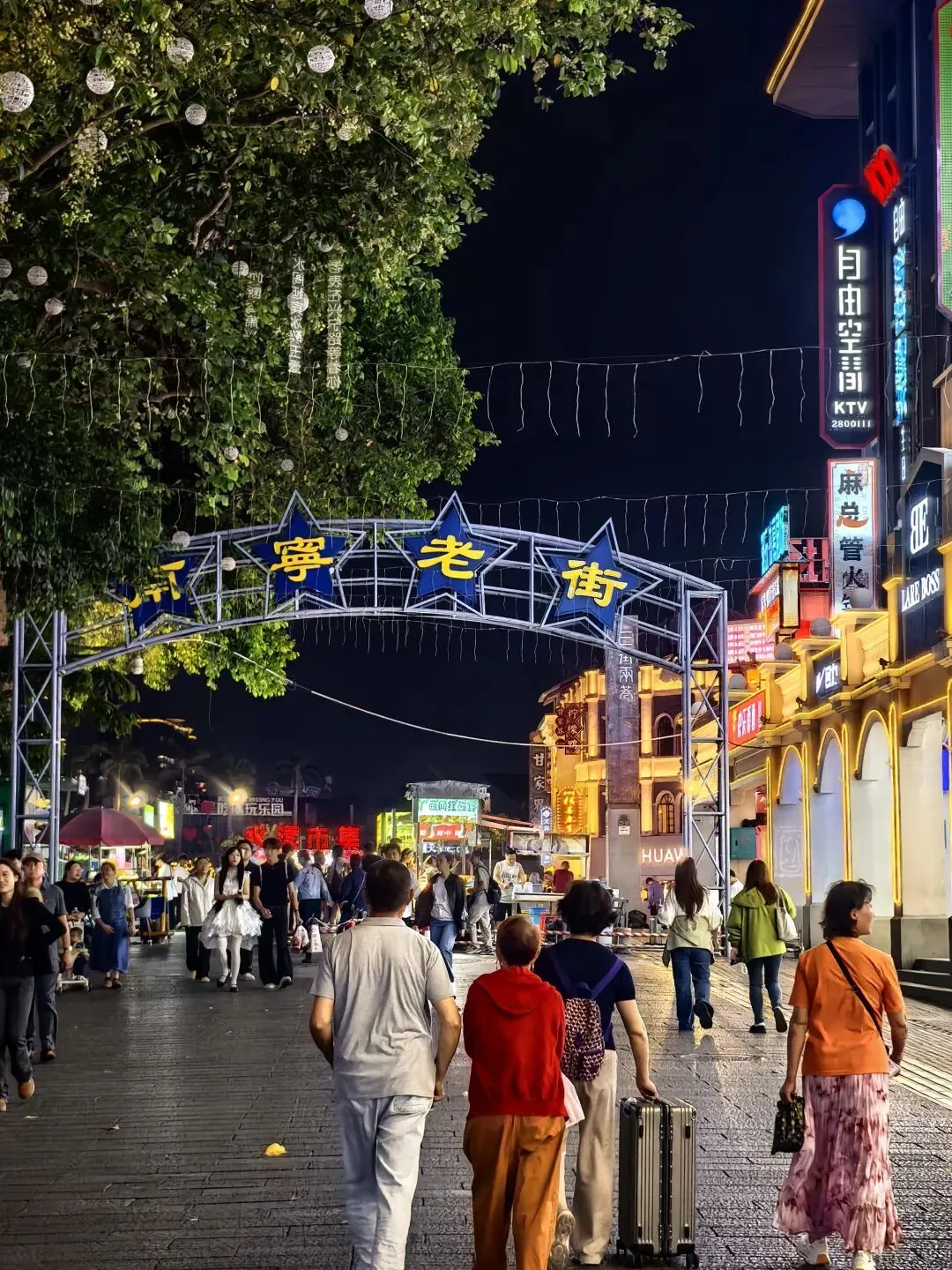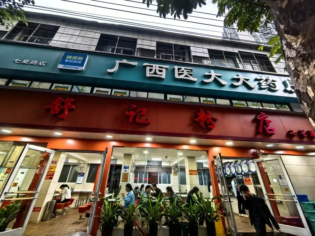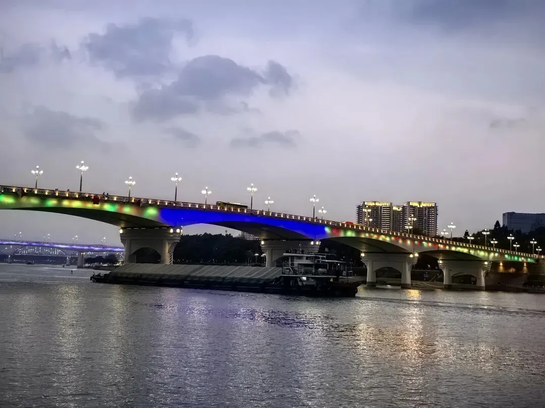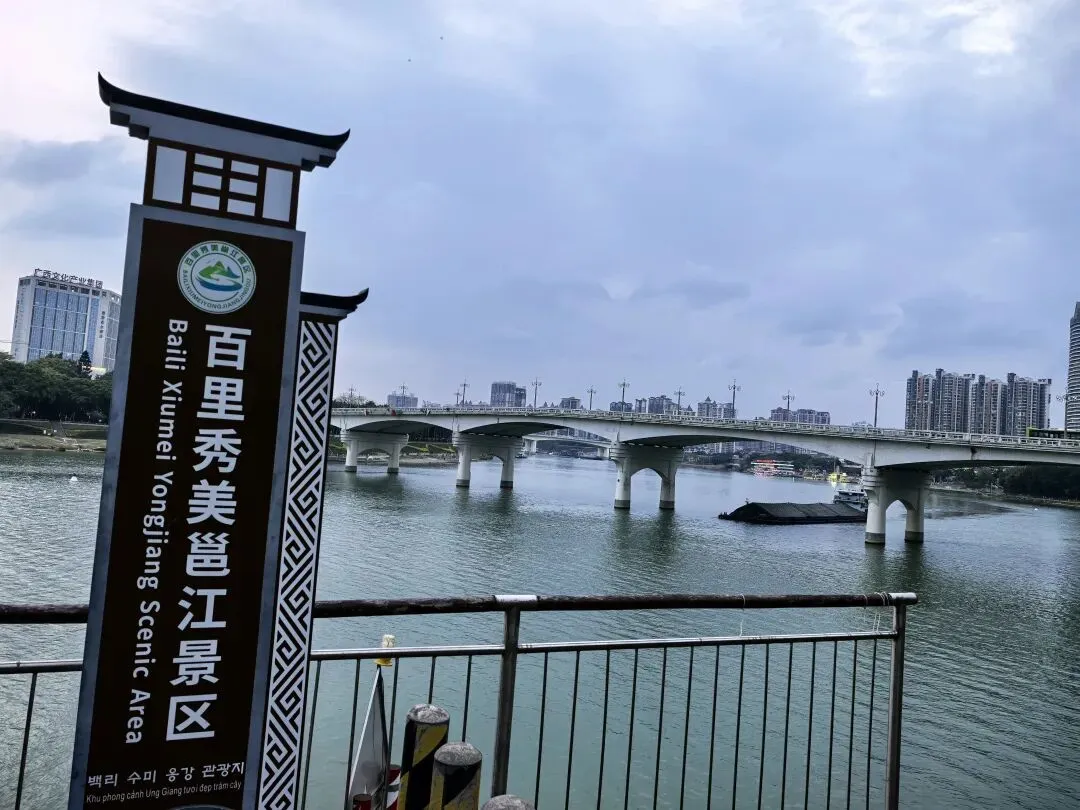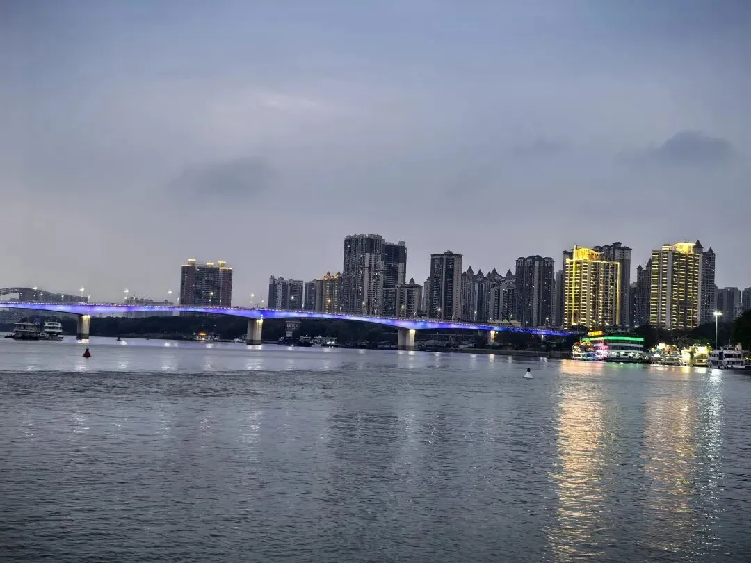 三点四十,进入玉林。Ivan想喝咖啡,连续进了三个服务区,都没有卖咖啡的。Ivan说,这地方的经济确实是差一些,连卖咖啡的都没有。……虽然没什么逻辑,又好像有点道理。和Ivan商量晚上在哪歇脚,我想找个小县城。他说想去南宁吃碗老友粉,好吧,跟着年轻人就按年轻人的喜好来,也许能让我年轻几分。傍晚六时,到达南宁酒店,然后马不停蹄的去吃老友粉。老实说,我没感觉老友粉有多好吃,对于吃惯清淡的广州人而言,这个粉的味道或许浓郁了,不过里面的“料”实在足,而且价格太实惠了,一大碗才15元。再看看古城墙,邕江大桥头的古城墙(核心遗迹)位于邕江大桥北端东侧。这是南宁唯一保存下来的明清城墙,2005年修缮后长112米,高约12米。墙上一棵盘根错节的大榕树与城墙融为一体。天色暗下来的时候,桥桥和两岸的灯光亮起来了。这时歌声就从邕江边某个角落漫过来了。没有舞台,没有灯光。一个音箱搁在江堤上,男孩子的声音被江风扯得忽远忽近,像对岸的灯火,明明灭灭。
