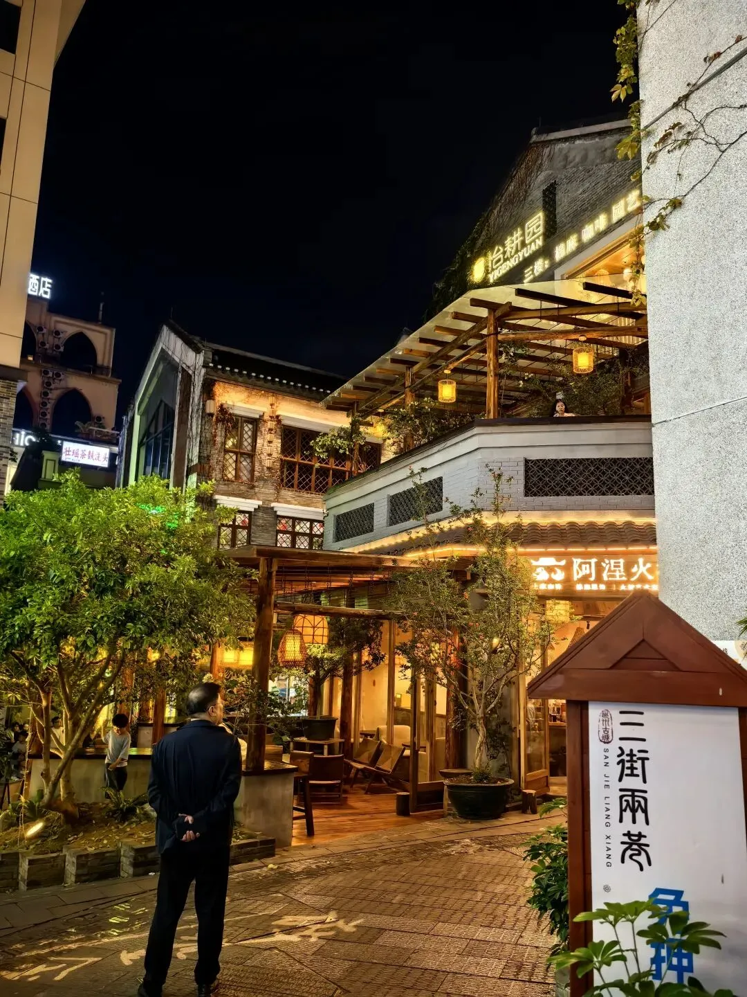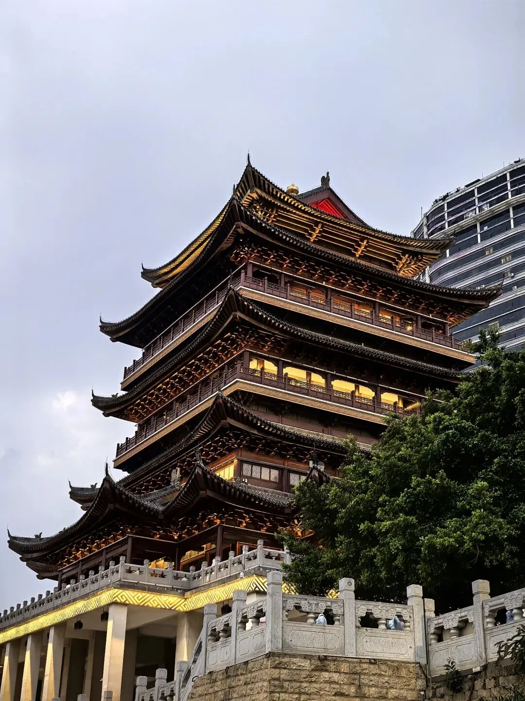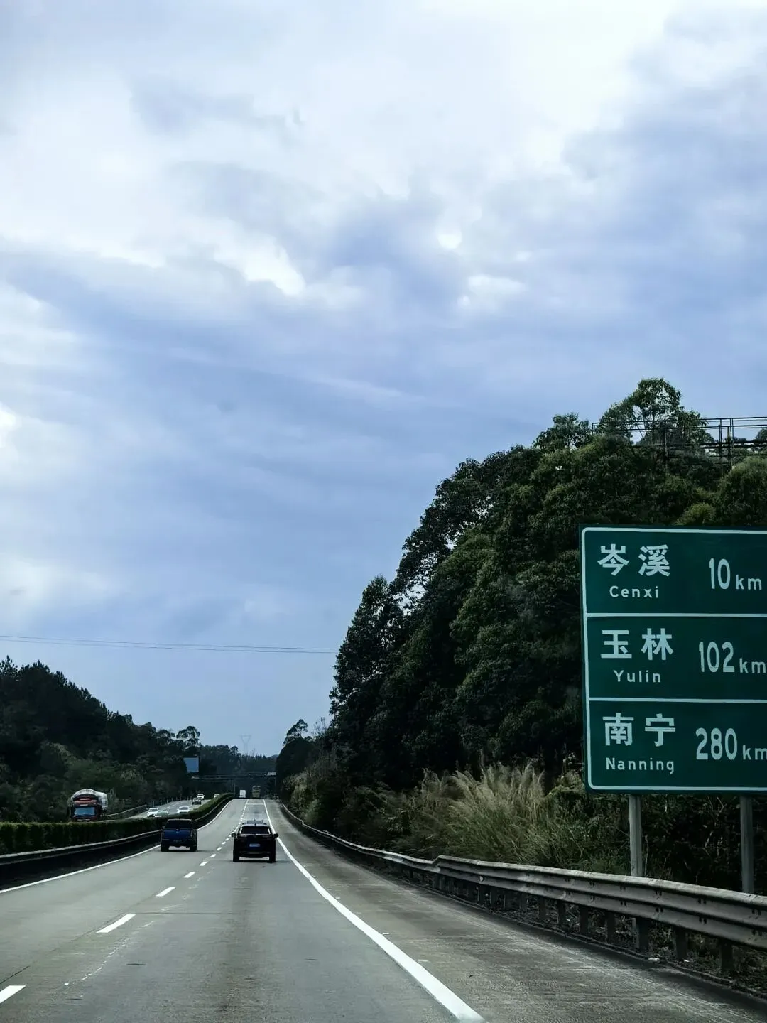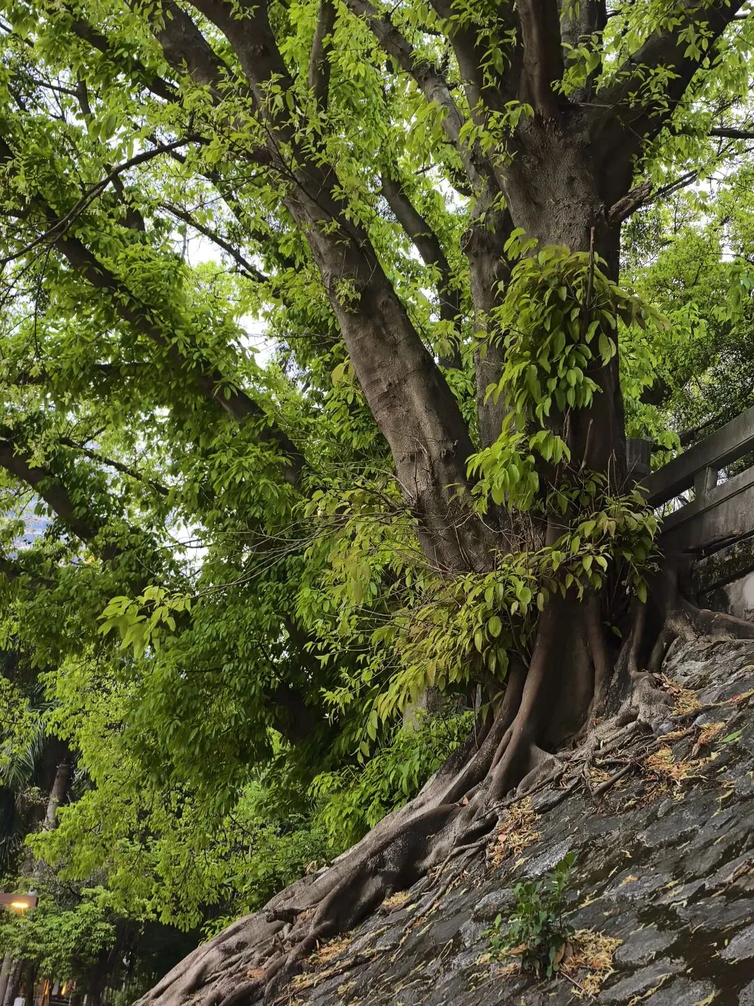 三点四十,进入玉林。Ivan想喝咖啡,连续进了三个服务区,都没有卖咖啡的。Ivan说,这地方的经济确实是差一些,连卖咖啡的都没有。……虽然没什么逻辑,又好像有点道理。和Ivan商量晚上在哪歇脚,我想找个小县城。他说想去南宁吃碗老友粉,好吧,跟着年轻人就按年轻人的喜好来,也许能让我年轻几分。傍晚六时,到达南宁酒店,然后马不停蹄的去吃老友粉。老实说,我没感觉老友粉有多好吃,对于吃惯清淡的广州人而言,这个粉的味道或许浓郁了,不过里面的“料”实在足,而且价格太实惠了,一大碗才15元。再看看古城墙,邕江大桥头的古城墙(核心遗迹)位于邕江大桥北端东侧。这是南宁唯一保存下来的明清城墙,2005年修缮后长112米,高约12米。墙上一棵盘根错节的大榕树与城墙融为一体。天色暗下来的时候,桥桥和两岸的灯光亮起来了。这时歌声就从邕江边某个角落漫过来了。没有舞台,没有灯光。一个音箱搁在江堤上,男孩子的声音被江风扯得忽远忽近,像对岸的灯火,明明灭灭。