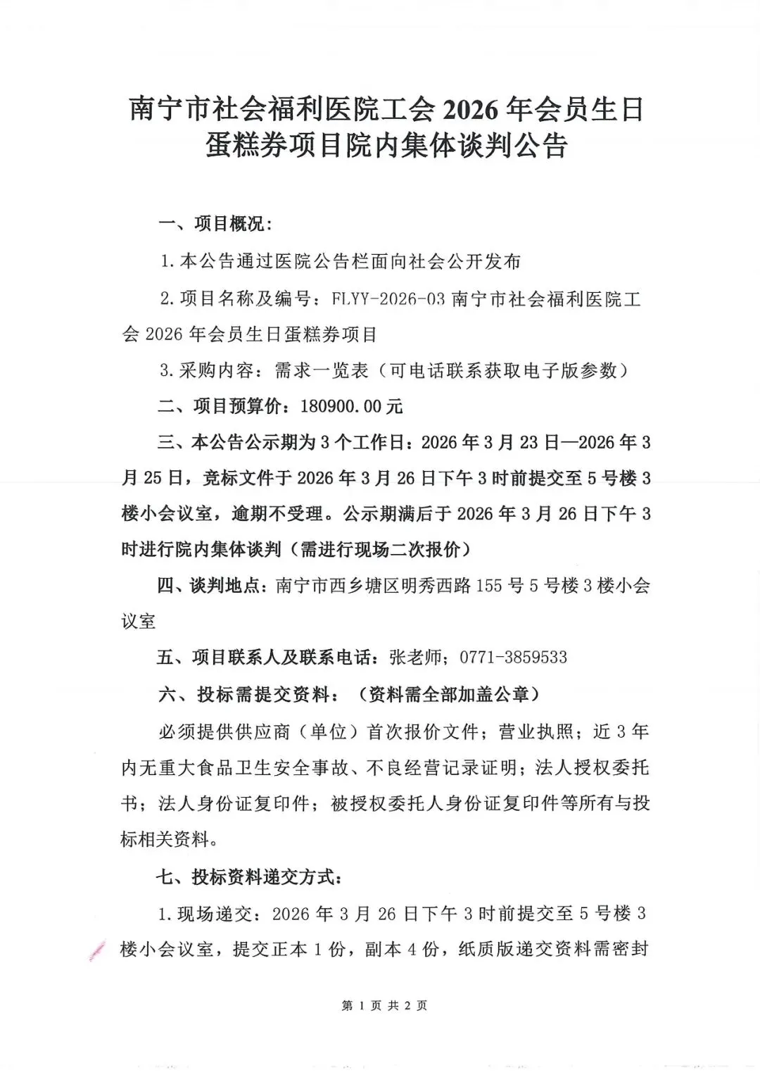 南宁市社会福利医院院内集体谈判公告