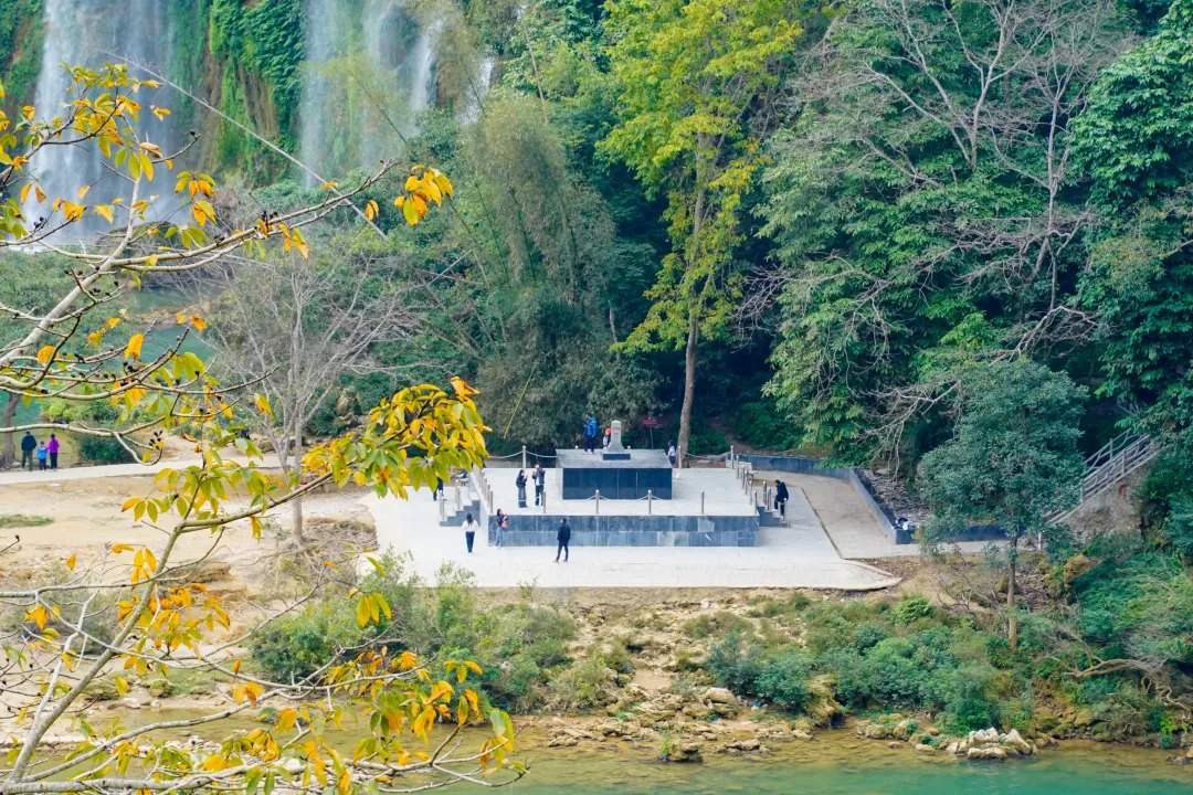 约莫十点光景,我们到达德天瀑布景区游客中心,几乎没有排队就顺利坐上了景交。说起来,德天瀑布的核心景区其实不大。景交停在德天牌坊前,从这里往下走到坐竹筏的地方,10分钟都用不了。
