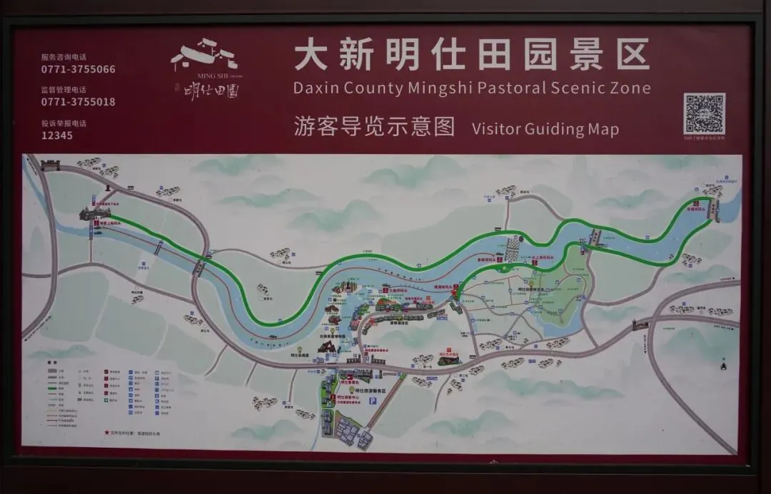 明仕田园沿明仕河展开,覆盖明仕村及周边部分区域,集喀斯特山水的峻秀、田园阡陌的静谧、竹筏漂流的惬意、壮乡民俗的鲜活于一体。景区内的壮族民居博物园和明仕田园综合体,是要收门票的,票价还不便宜,打包价120元,可以跟竹筏票一起买更划算一点。