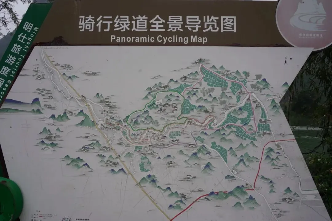 我们从长留山居门口经过,沿着骑行道一路往前,骑了好一阵子,眼看民居博物园就在河对岸,却始终找不到可以渡河的桥(鱼鳞坝一边是锁上的,只能到坝上玩,穿不过去)。没办法,只能停下脚步问路,大爷说,想要过河,起码还有3公里。我顿时眼前一黑,哭笑不得,考虑再三还是决定原路返回。