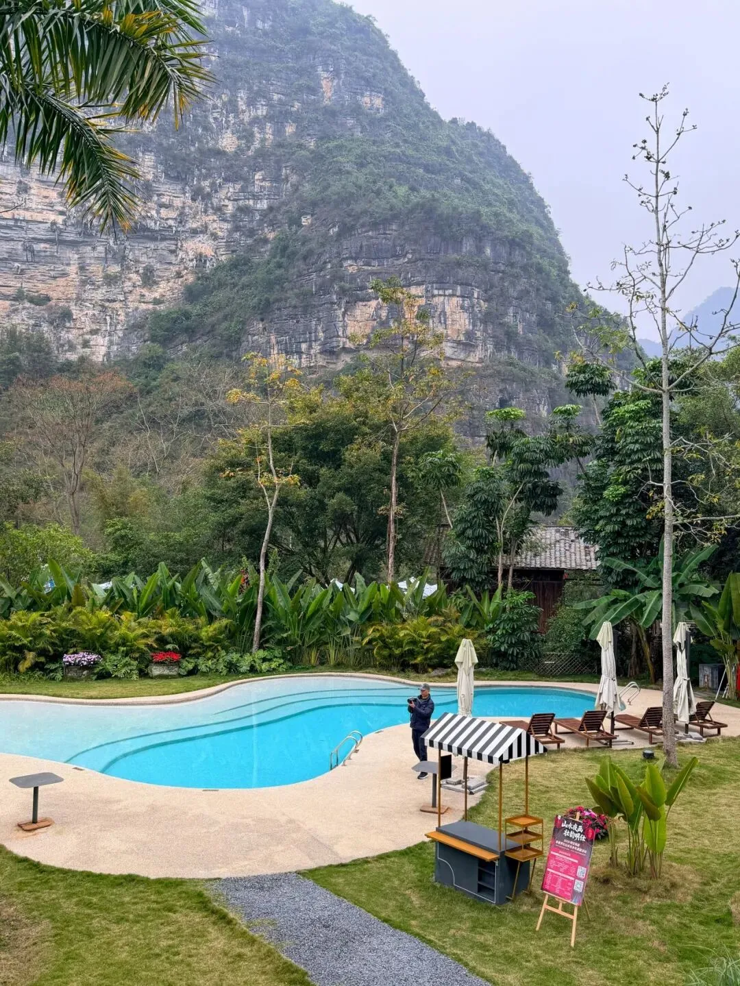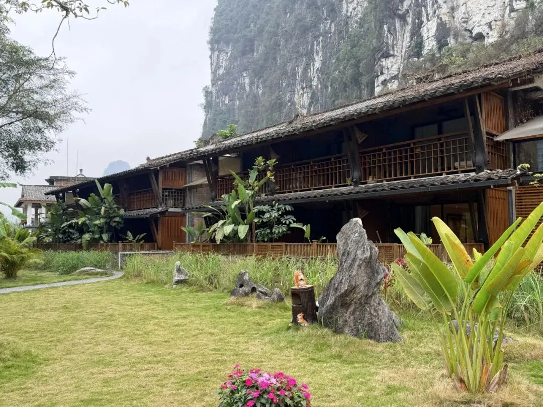 如果有人说,我来明仕,不为赶景点,不为凑热闹,就想安安静静待几天,追求那种“躺在山水画里”的松弛感。那我建议你多看看东北面那关附近的住宿。但凡房间有一面落地玻璃,分分钟拍出宣传片里的效果。当然了,这样的地方肯定比较偏僻(幽静),像体量还算大的长留山居,也是自成一方天地。