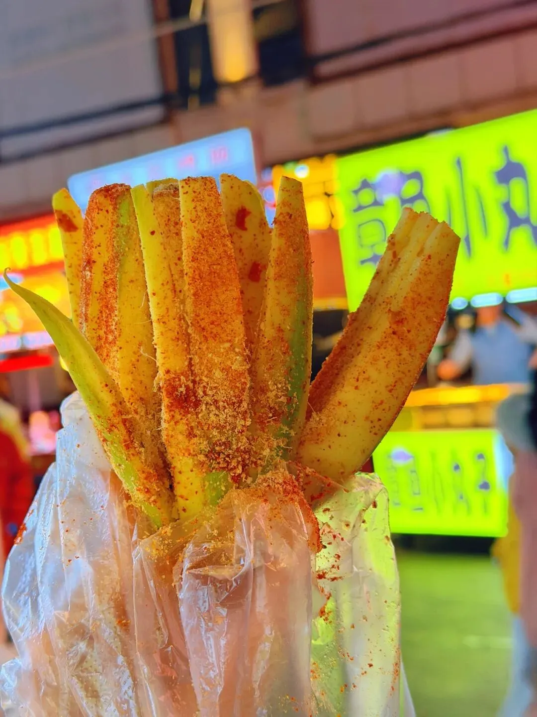 但让我眼前一亮的,还得是夜市上的酸嘢,到底是哪个大聪明想出来的,在水果上面撒辣椒面?这味道,贼带劲。