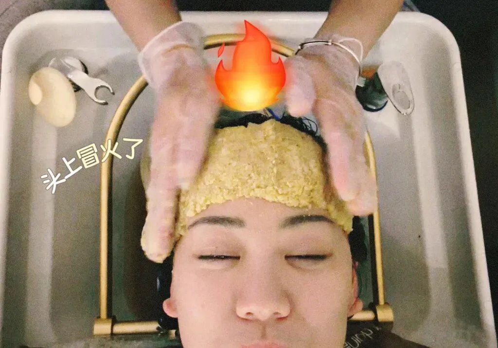 茶敷洗头跟芒市的体验有点像,都是洗头+按摩,区别是,这里会用姜汁、淘米水,有护发养头皮的功效。建议加点钱上姜疗,就是把鲜榨小黄姜敷在额头上,能不能化瘀不知道,但活血是真活血,只感觉一股热辣辣的暖意从头顶漫开,天灵盖都跟要着火似的。等到把姜末都洗掉,整个人瞬间神清气爽。