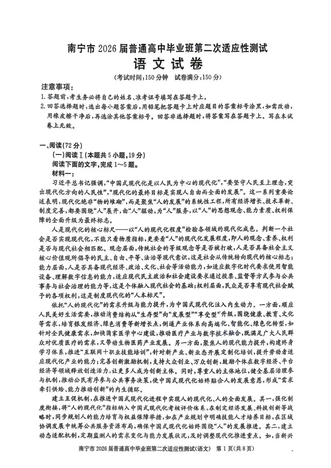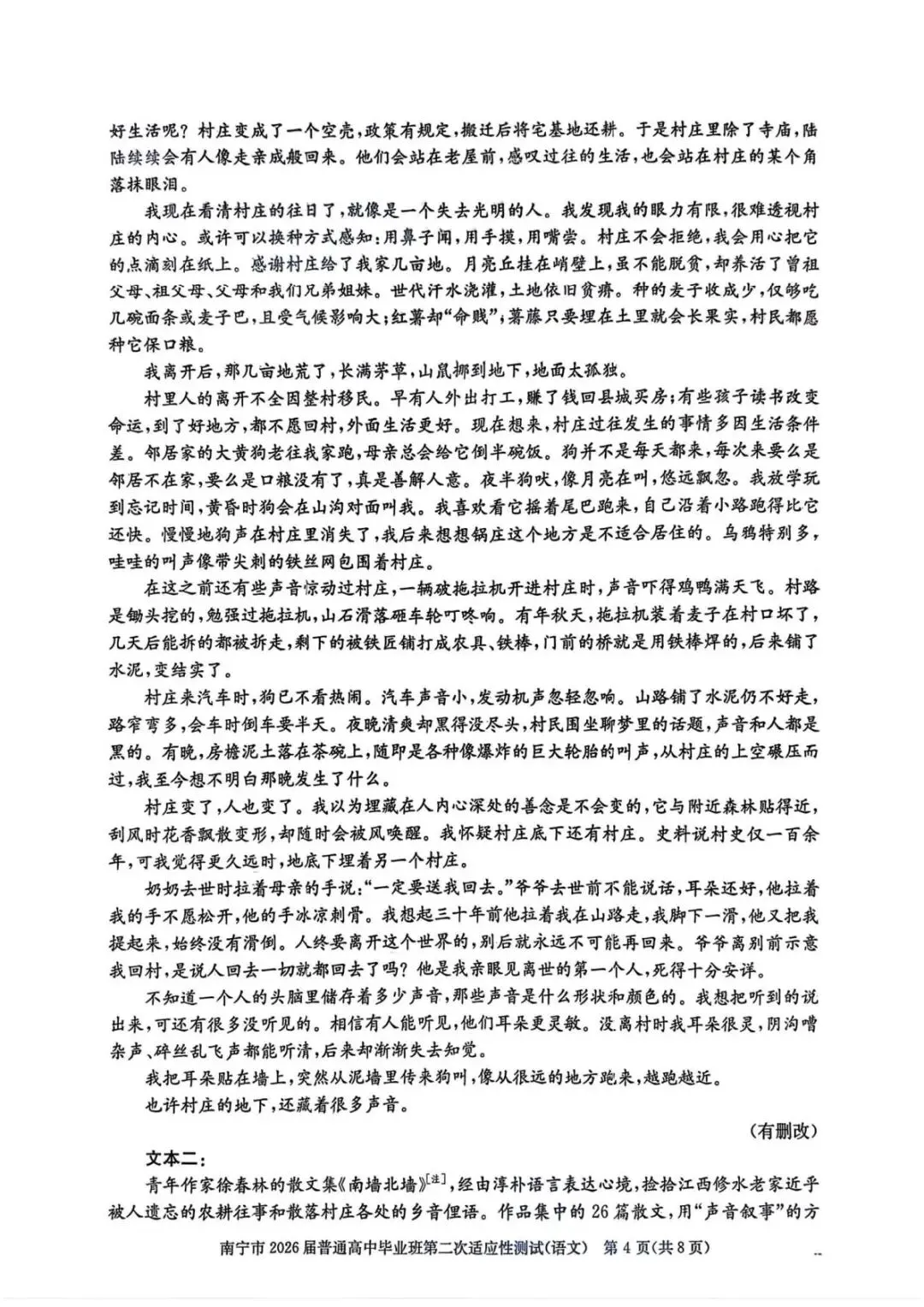 南宁二模2026届普通高中毕业班第二次适应性测试试卷及答案汇总
