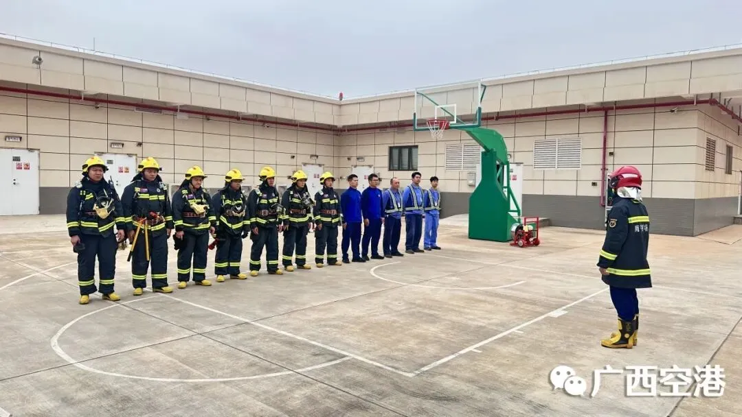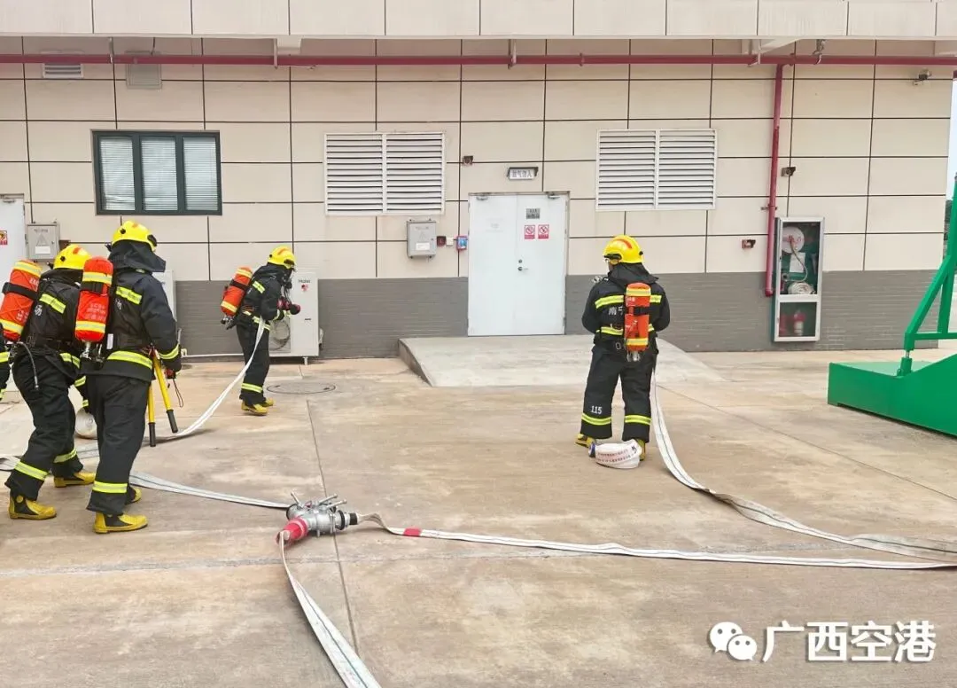 南宁机场消防救援部与飞行区管理部开展建筑物火灾应急演练