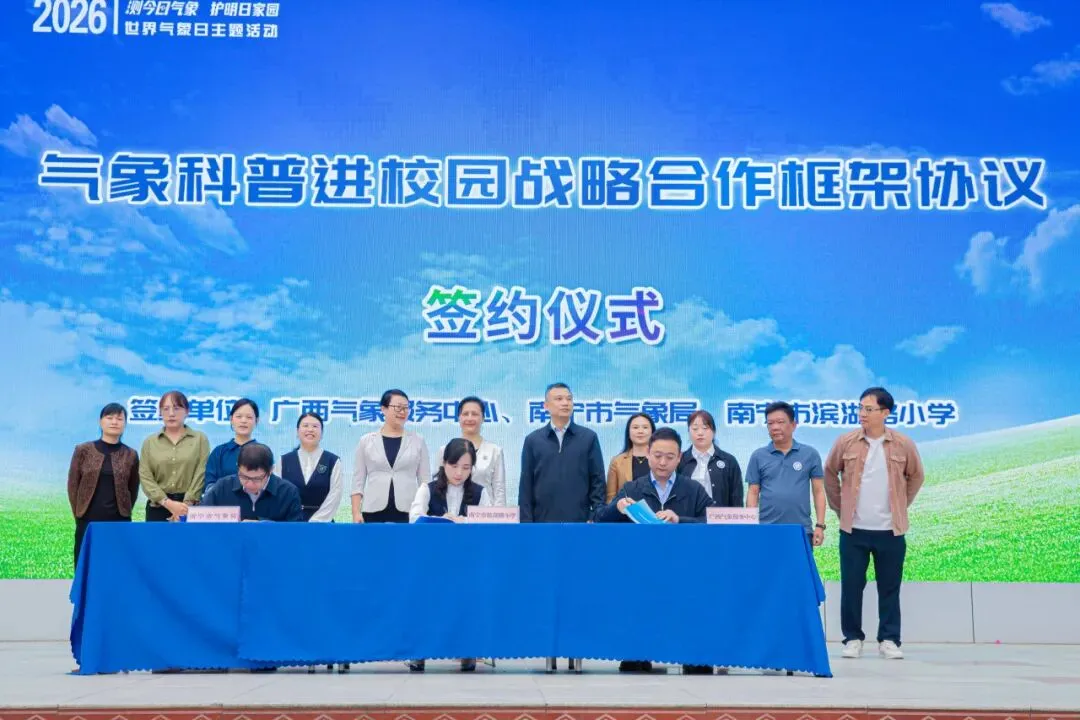 随后,广西气象服务中心、南宁市气象局、滨湖路小学现场签署《气象科普进校园战略合作框架协议》,未来将通过联合开发校本课程、校园气象站共建、科普产品研发等创新形式,推动气象科普从单向传授向沉浸式、系统化、可复制模式转型升级。