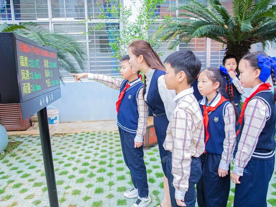 活动当天恰逢春分,滨湖路小学气象站正式开播,播音员实时播报校园天气实况,普及节气与气象知识。
