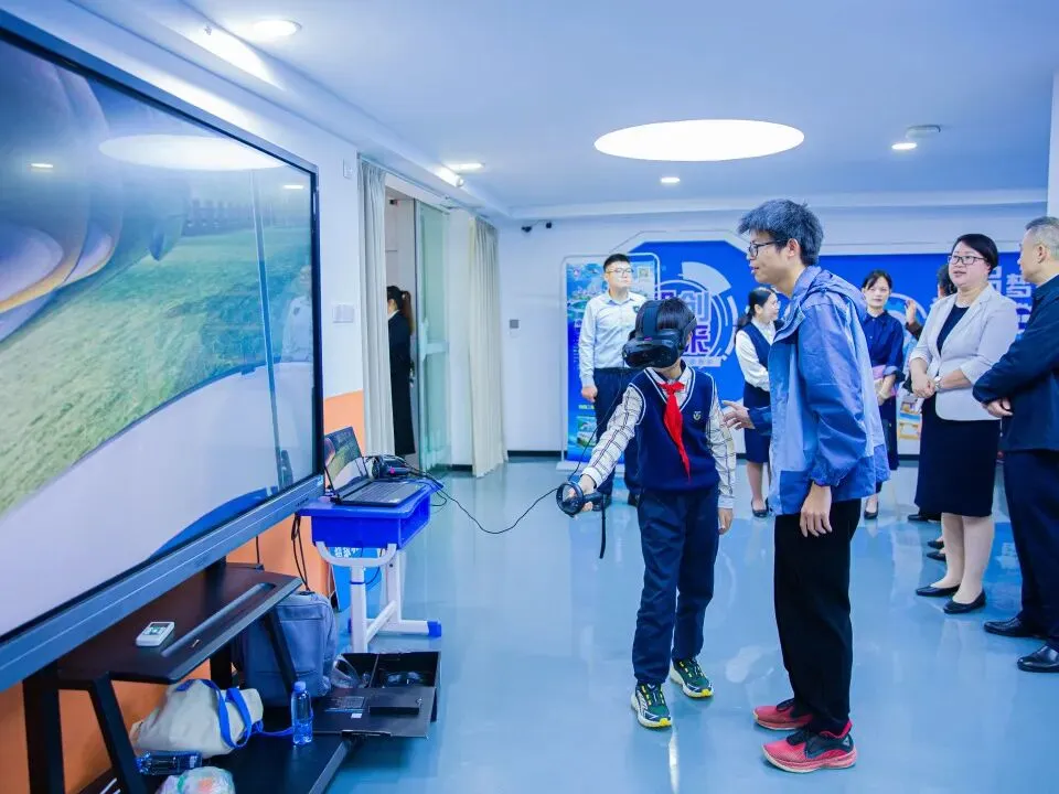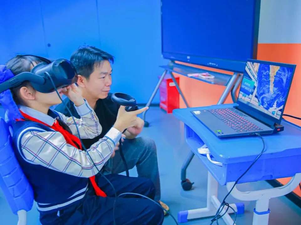 开幕式后,丰富多彩的科普互动体验活动吸引众多学生参与。在书画展区,大家驻足欣赏“我笔下的风云变幻 我心中的绿色家园”优秀学生作品。在校园气象观测站,学生们对观测传感器、3D打印卫星雷达模型等设备充满了好奇,近距离了解气象观测知识。人工影响天气作业车展示区前,孩子们零距离接触人影火箭发射炮弹,聆听工作人员讲解人工增雨原理与操作流程。VR体验区里,大家沉浸式感受“地球气候”与“人工增雨”场景,在趣味互动中学习气象原理及灾害防御知识,在“天气记忆AI助手”中巩固历史气象知识,收获独一无二的“天气记忆”。在互动体验区,“气象木构搭建”“数字气象游戏”等互动项目,更让抽象的科学原理变得可触可感。