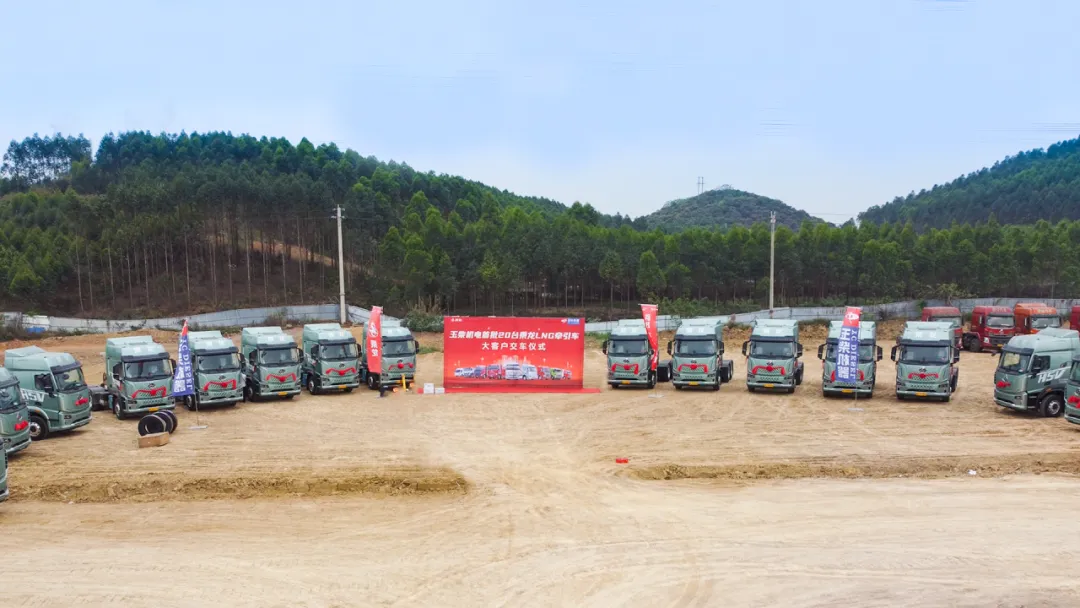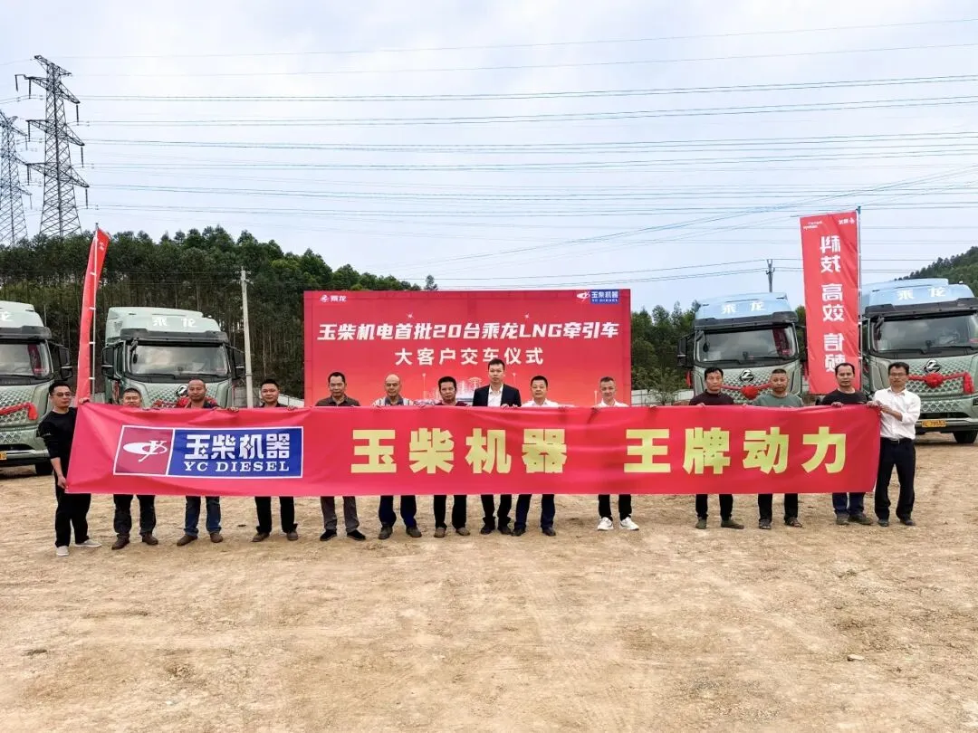 近日,玉柴机电南宁公司(百色区域)顺利向某大客户交付首批20台搭载玉柴520马力发动机的乘龙H5V LNG牵引车,此批车辆将投入该大客户“百色市-北部湾港口”运输线路的物料运输工作,为客户扩宽市场、降本增效提供助力。