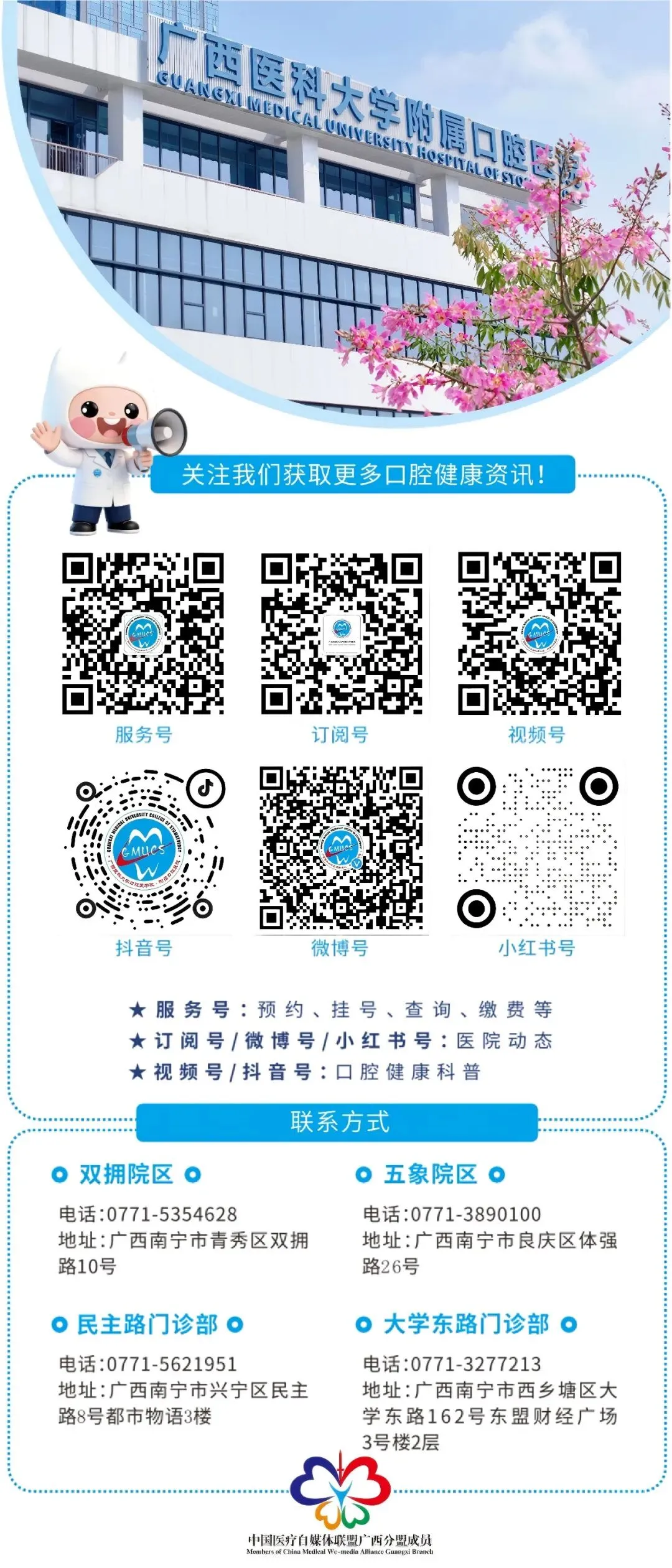 为深化校地联动与资源整合,推动医疗健康产业创新发展,助力自贸试验区南宁片区打造面向东盟的医疗健康与科技创新高地,2026年3月20日,自贸试验区南宁片区管委会自贸创新发展局局长伍志慧、南宁市知识产权保护中心综合运营部副职负责人文琪一行到广西医科大学附属口腔医院五象院区调研座谈。广西医科大学副校长、附属口腔医院院长廖红兵,医院副院长陶人川、梁飞新及相关职能部门负责人参会。