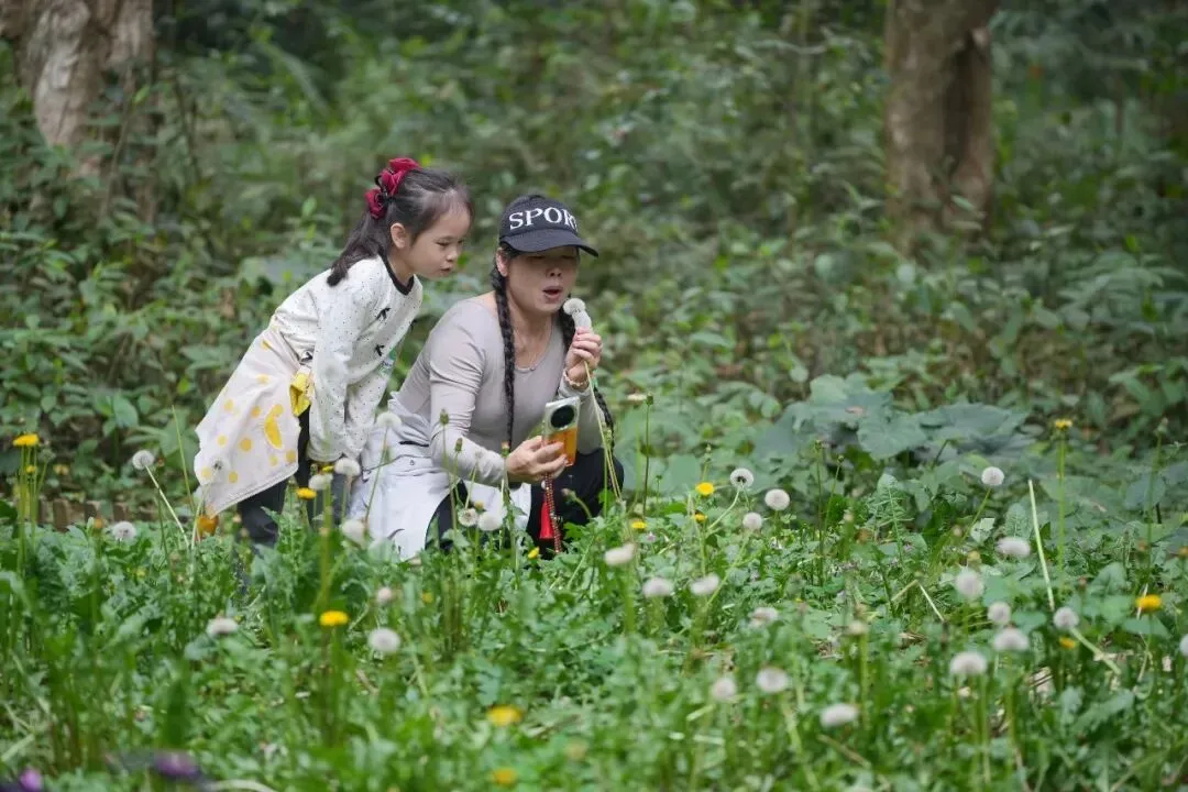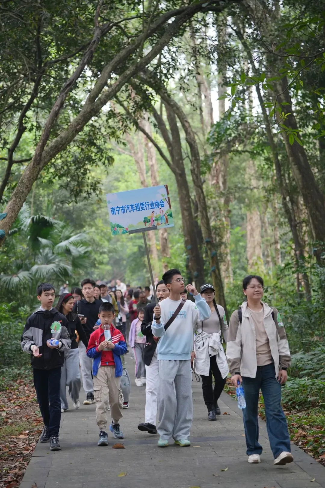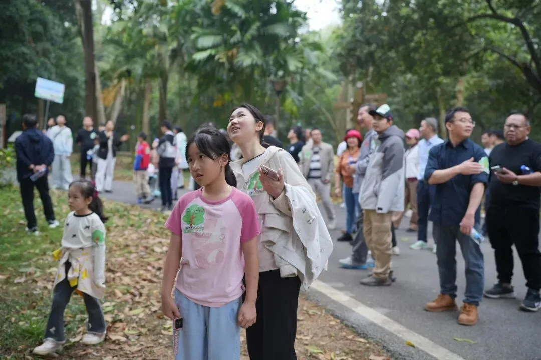 紧接着,活动进入研学讲解环节。在公园专业护林员的带领下,家长与孩子们走进“植物王国”,聆听广西珍稀树种的科普讲解。望天树、金花茶等国家级保护植物引得大家连连惊叹,孩子们在自然课堂中收获知识,在实践中懂得担当。
