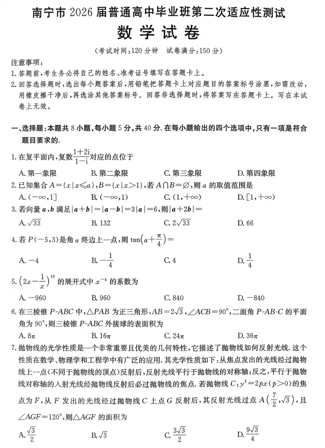 我用夸克网盘给你分享了「广西南宁市2026届普通高中毕业班第二次适应性测试数学试卷.pdf」,点击链接或复制整段内容,打开「夸克APP」即可获取。