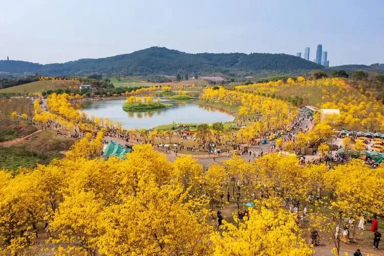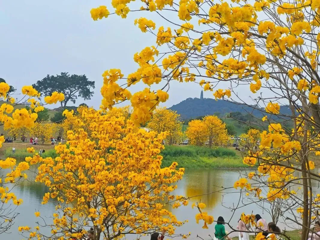 这几天,打开南宁人的朋友圈,你可能会怀疑大家是不是集体调了滤镜——满屏都是灿烂的金黄色。青秀山风景区里,那近7000株黄花风铃木迎来了盛花期,彻底点燃了这座城市的春日热情。