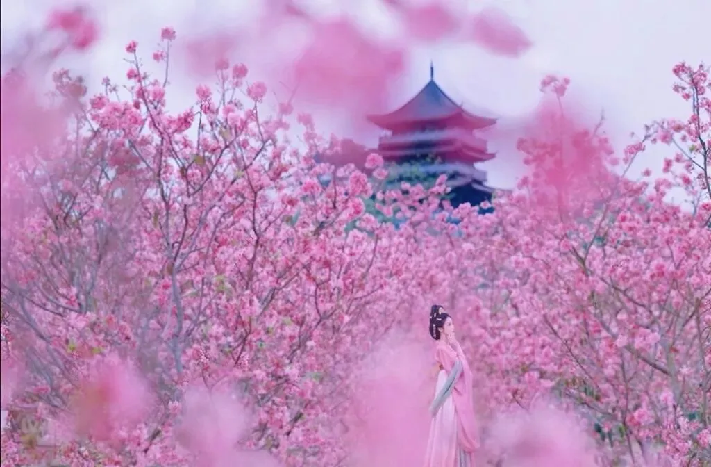 樱花盛开,穿汉服去拍照了,赋诗一首。