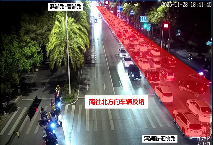 滨湖路(碧湖路-长湖路)路段晚高峰时段原已实施南往北方向绿波协调控制。但随着交通流量增长、交通状况变化,原有绿波协调方案已不适用于当前通行现状,南往北方向协调效果较差。