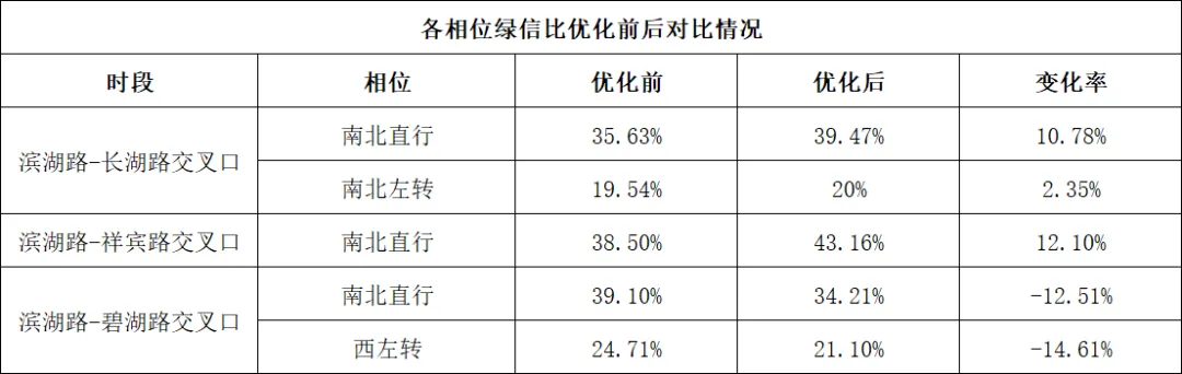 2.滨湖路-长湖路交叉口与滨湖路-碧湖路交叉口:通行效率显著提高,晚高峰时段交通拥堵现象明显缓解。
