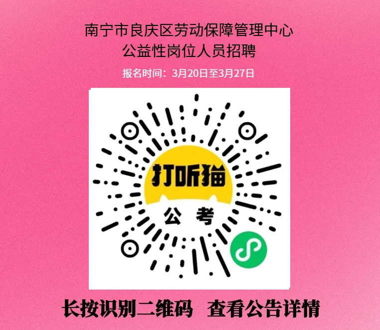 【南宁招聘】南宁市良庆区劳动保障管理中心公益性岗位人员招聘!