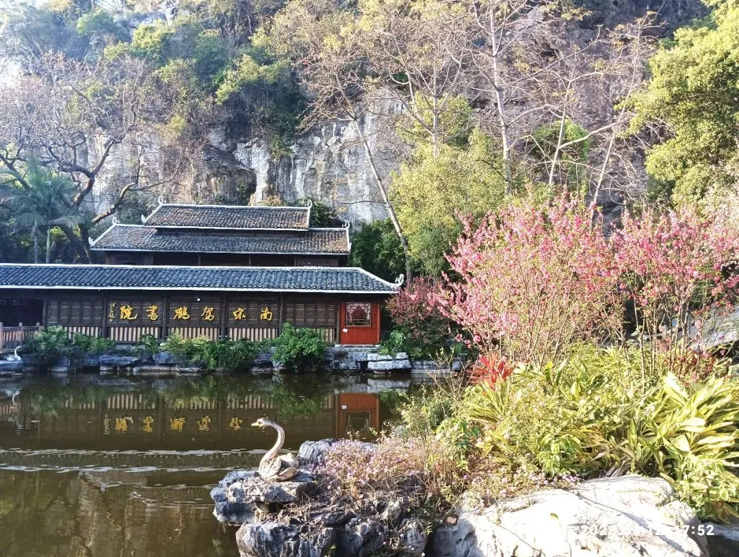 广西柳州的文惠桥头,驾鹤山麓,有一个小公园——驾鹤小桃源。这里有一座广西最早的书院之一,它就是在历史上颇负盛名、始建于南宋的柳州驾鹤书院。这座朱红色书院为局部二层木结构建筑,有个院子,合围起来像四合院一样,面积共300多平方米的独特建筑。柳州驾鹤书院建在一株百年的木棉花下,推开写有“驾鹤书院”几个大字的木门,里面可以看到长廊和庭院,种有几株翠竹,在走廊上贴有许多书法作品。正前方是一个延伸到水里的平台,这里现在主要是用于举办各种书法活动,也有人在里面创作,有的在临帖。整个书院给人的感觉是宁静幽雅,文艺气息浓,其背山面水,周围绿树环绕,置于柳州驾鹤小桃园中 一年四季的景色美且富有变化,时时有习习江风拂来,树叶或“沙沙”落下,不禁让人产生感慨:这里真是一个读书、陶冶情操、洗涤心灵的好地方。南宋绍兴二年,王安中、吴敏、汪伯彦3位丞相遭贬官后,流寓柳州,在驾鹤山麓闲居时,留恋此山林泉,建了两处茅亭,一处为“三相亭”,另一种为驾鹤书院。他们在驾鹤书院,每日“观书论诗”。驾鹤书院是宋代广西出现的11座书院中最早的书院。它是柳州历史上第1个私立的文化教育机构,宋代柳州文化教育兴盛的标志之一。文物部门根据南麓崖壁王安中“驾鹤书院”书法石刻字样,在其附近试挖探沟。在距山脚15米的地面下1米深处,考古队员发现了一片排列整齐的青砖。 文物专家推测,青砖为驾鹤书院的遗留物。2003年,驾鹤书院作为重点景观得以重建,现所见的驾鹤书院在原址南侧兴建,占地面积扩大一倍。驾鹤书院背靠的驾鹤山,为广西柳州自“古八景”之一的“驾鹤晴岚”所在地,山不高而陡,东西走向,山形精致独特,耸立在文惠桥头像一只孤鹤飞临柳江。山上尚存有宋代“小桃源”题词石刻及明清诗文石刻十方之多,价值甚高。与小桃源有关的传世诗文达50多篇、近万字,如南宋柳州知州赵师邈嘉泰三年重修三相亭的《三相亭碑记》、明代方溢的《小桃源赋》和清代范赫的《小桃源》等。在地理优越、景致优美的驾鹤小桃源景区建设中,保留了大量的人文与历史遗迹。地方以重建修复的方式保护历史遗迹,使驾鹤小桃源成为柳州小而美,且有大量人文景观的公园。因此,驾鹤小桃源获一美誉叫“小桃源,大文化”。旅行干货、景点美食、实用技巧,持续更新,关注金小游