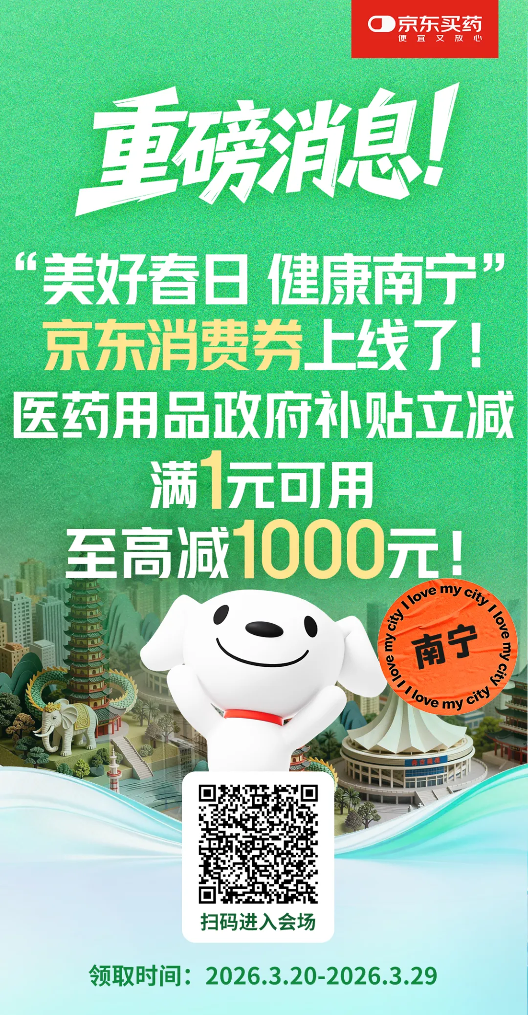 京东健康联合南宁发放医药消费券,最高立减1000元!