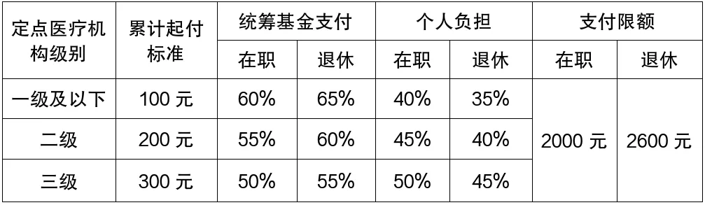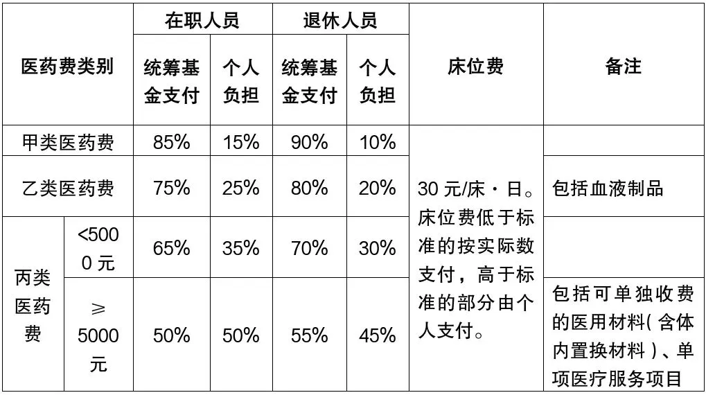 (二)医疗费分担支付比例和床位费支付标准