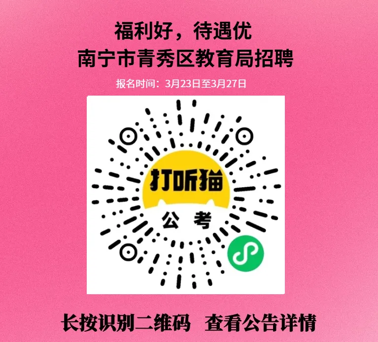 >【南宁招聘】福利好,待遇优!南宁市青秀区教育局招聘!