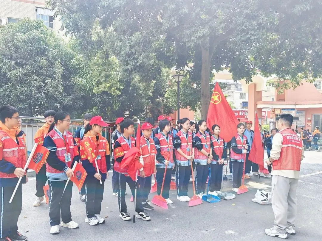 活动中,志愿者们佩戴红袖章,以饱满的热情投入服务,处处彰显雷锋精神的时代内涵。志愿者们化身雷锋精神宣传员,深入社区商铺、午托班等场所,向居民发放安全知识传单,耐心讲解防溺水、防火用电等安全常识,用真诚与耐心传递关爱与温暖,传承雷锋同志助人为乐、关爱他人的高尚情怀,让雷锋精神走进千家万户。在校园周边及交通路口,志愿者们化身文明交通引导员,手持引导旗认真值守,有序疏导人流车流,主动提醒行人遵守交通规则,用责任与坚守守护出行安全,践行雷锋精神服务人民、奉献社会的崇高追求,以点滴善举传递文明新风。同时,志愿者们化身环境清洁卫士,携带扫帚、夹子等工具,不怕脏、不怕累,对路面烟头、绿化带杂物、卫生死角进行全面清理整治,用双手美化社区环境,以实干劳动传承艰苦奋斗、无私奉献的精神品质,让雷锋精神在劳动实践中熠熠生辉。