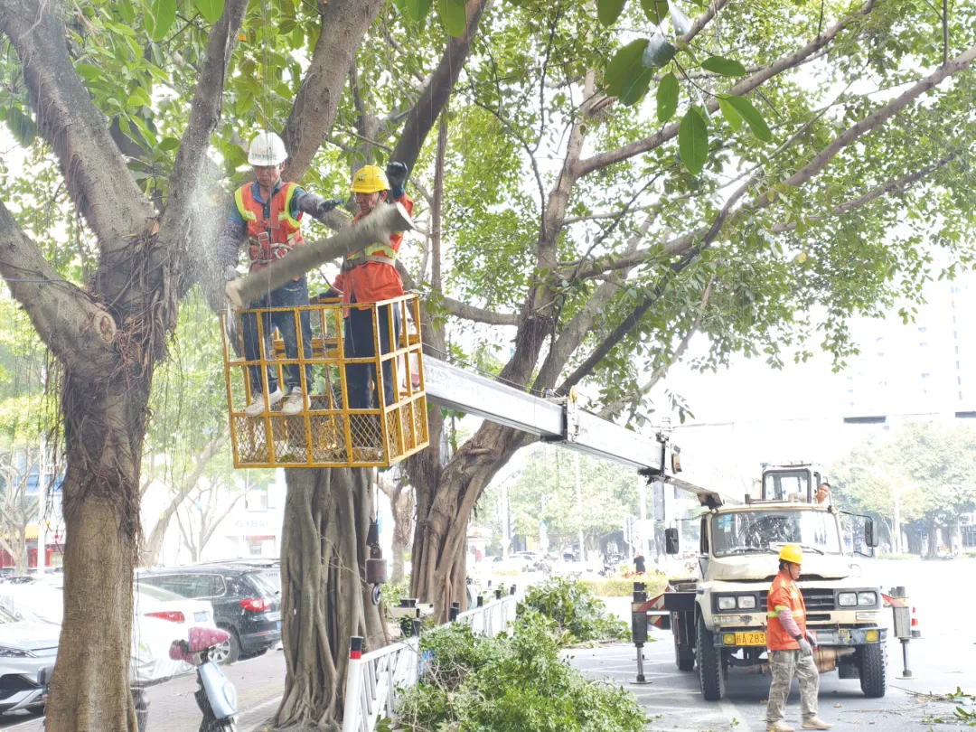为系统化解“树灯矛盾”,保障市民夜间出行安全,在确保树木正常生长、保留景观完整性的前提下,专业作业人员通过合规修剪,及时解决枝叶遮挡照明问题。对无法通过修剪枝叶的方式解决遮挡问题的,则通过增加矮臂灯并配合优化路灯硬件等方式增亮,切实改善道路夜间通行照明环境。