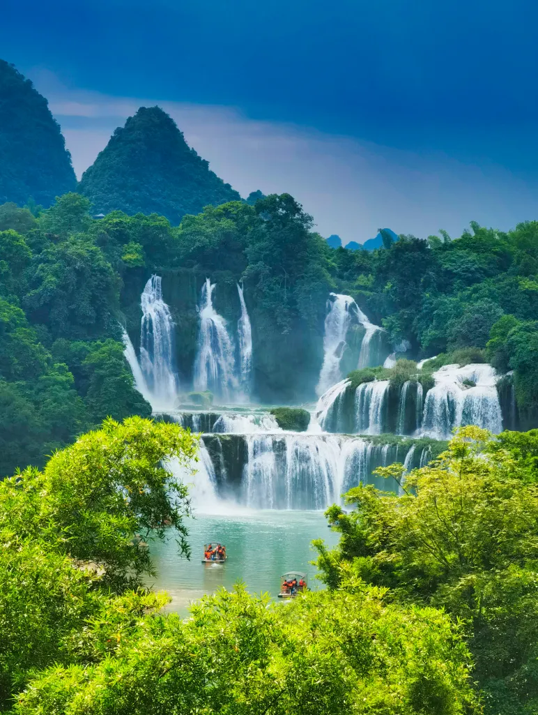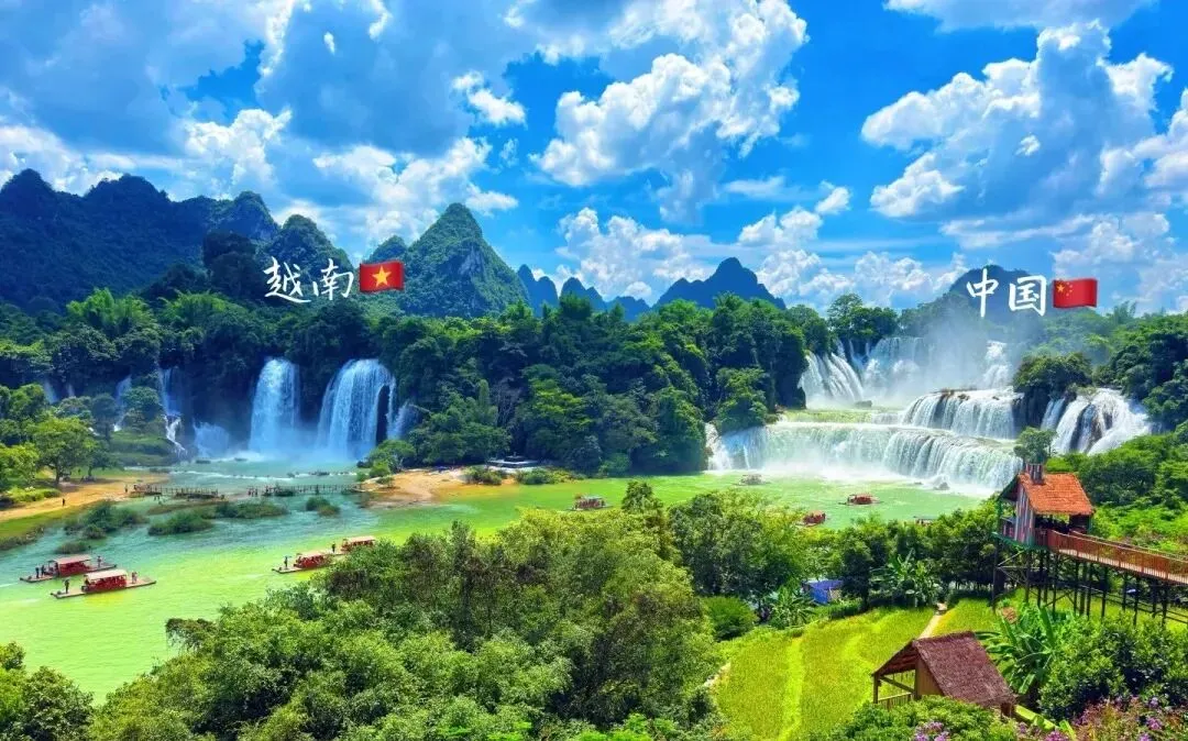 德天瀑布的轰鸣在国境线上回荡
