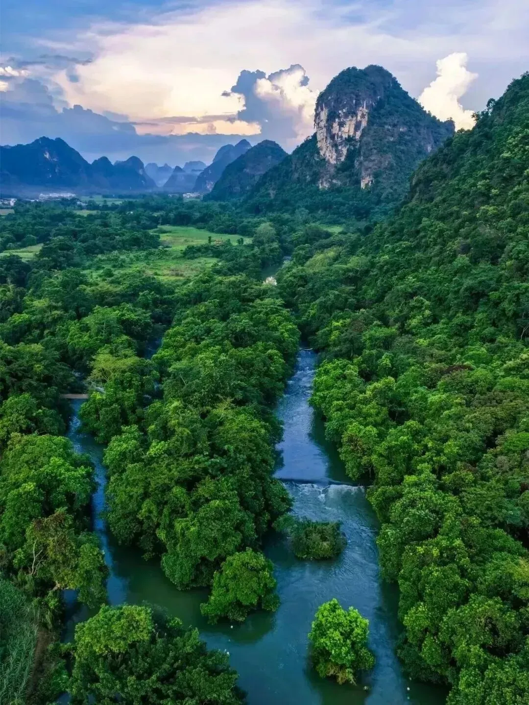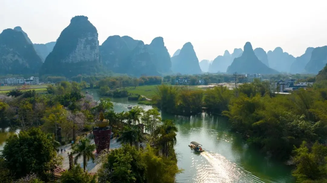 两岸喀斯特山峰如屏风矗立