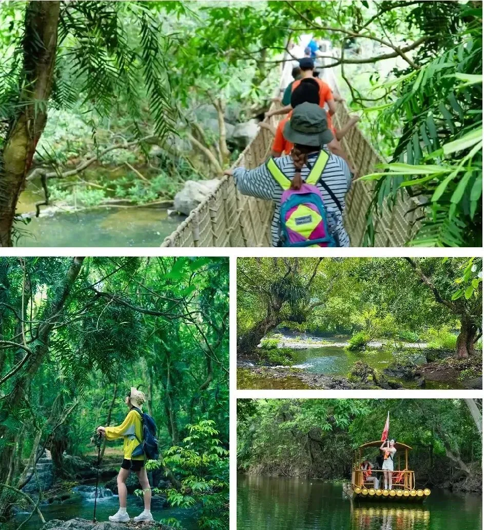 10:10 乘坐皮筏艇自己划船漂流穿越古劳峡、迎宾洞及地下暗河、新灵峡、百福洞及地下暗河。徒步游览古龙峡、古龙地下暗河溶洞、新桥峡瀑布群。观赏物种丰富的原始植被,气势磅礴的谷底河流,单级落差128米宽约70米凌空飞泻的古龙大瀑布,玻璃桥体验,12个美如画卷的瀑布群景观……游览途中还将徙步穿越全长1180米美轮美奂的古龙地下暗河溶洞;