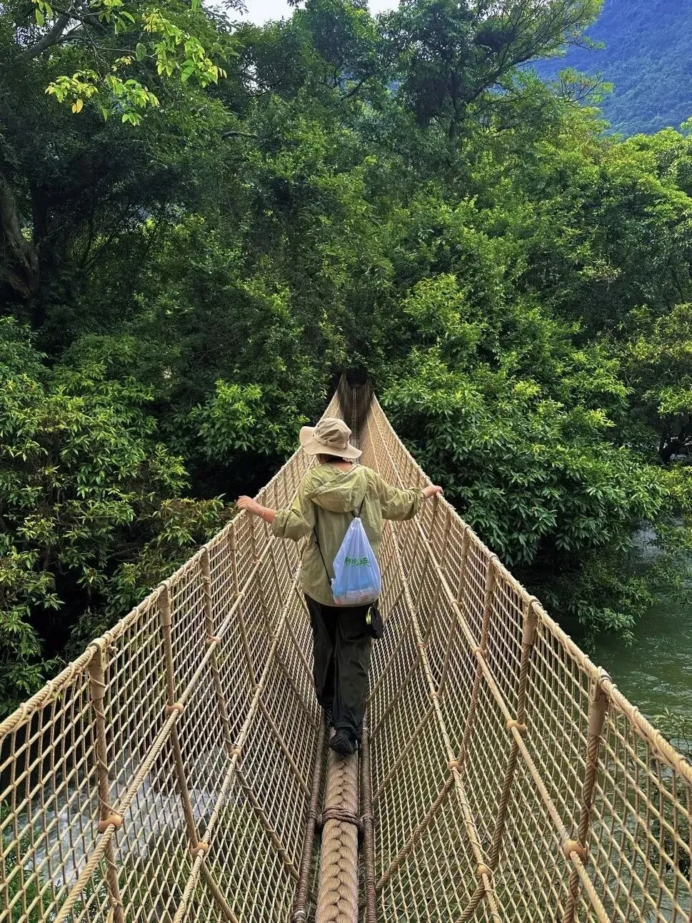 脚踩石板路,沿途走过索桥、竹桥、藤桥、石桥.....