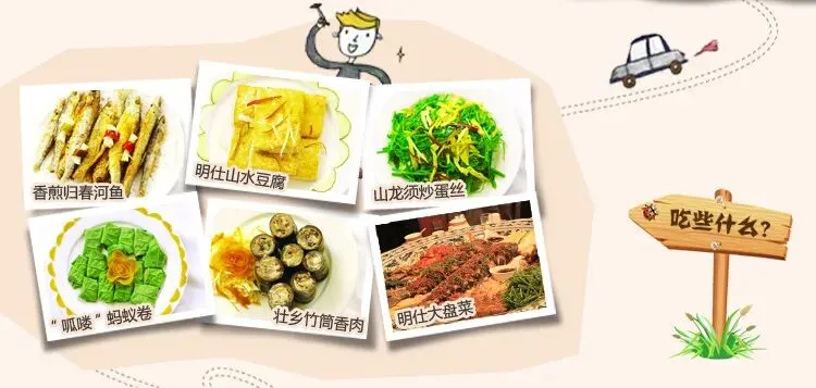 09:00 早餐,您可以早起来欣赏明仕田园的朝霞风光,免费享受具有壮家风情的丰富多样自助早餐;
