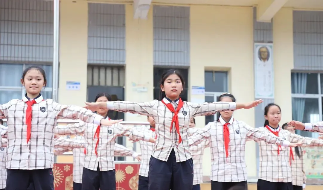 首先举行庄严的升旗仪式,全校师生着装整齐、庄严肃立,伴随着少先队员敬队礼和齐唱国歌声,五星红旗冉冉升起。