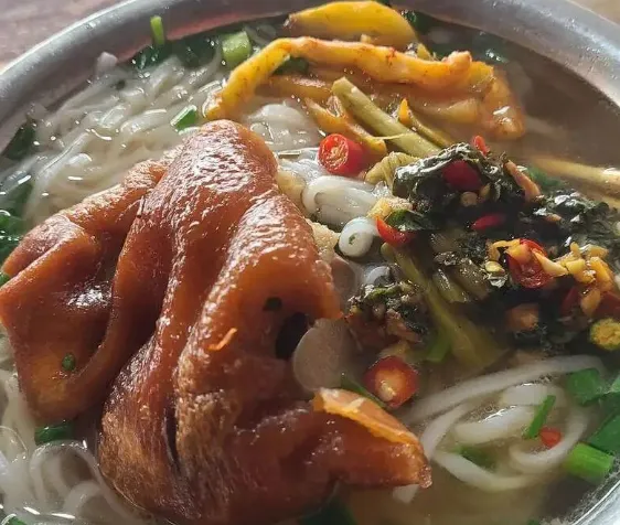 早上先来一碗猪脚粉,汤底偏清,入口有骨香,猪脚软糯不腻,汤一喝,人就醒了。再配一枚海鸭蛋,咸香里有沙感,口感很稳,不抢味。