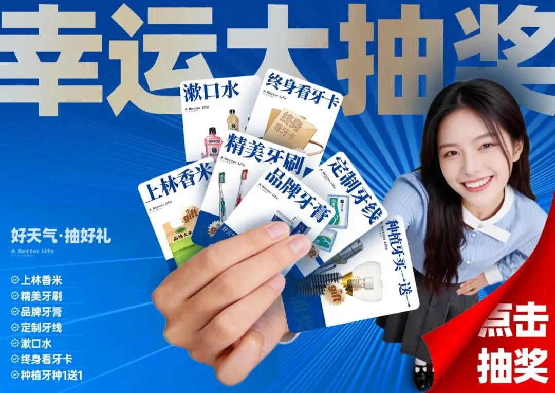 上林香米、种植牙种1送1、终身看牙卡、漱口水、品牌牙膏、精美牙刷、定制牙线......每一样都很实用,抽中哪份拿哪份!(注意啦,活动福利仅限前200参与,先到先得~)