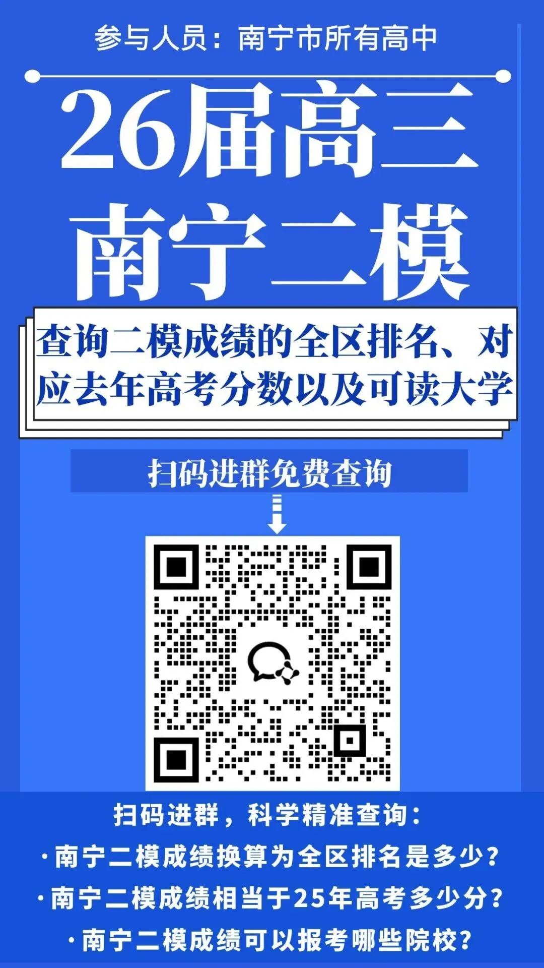 >进群免费换算!根据南宁二模成绩查询全区排名和各个分数可读大学!