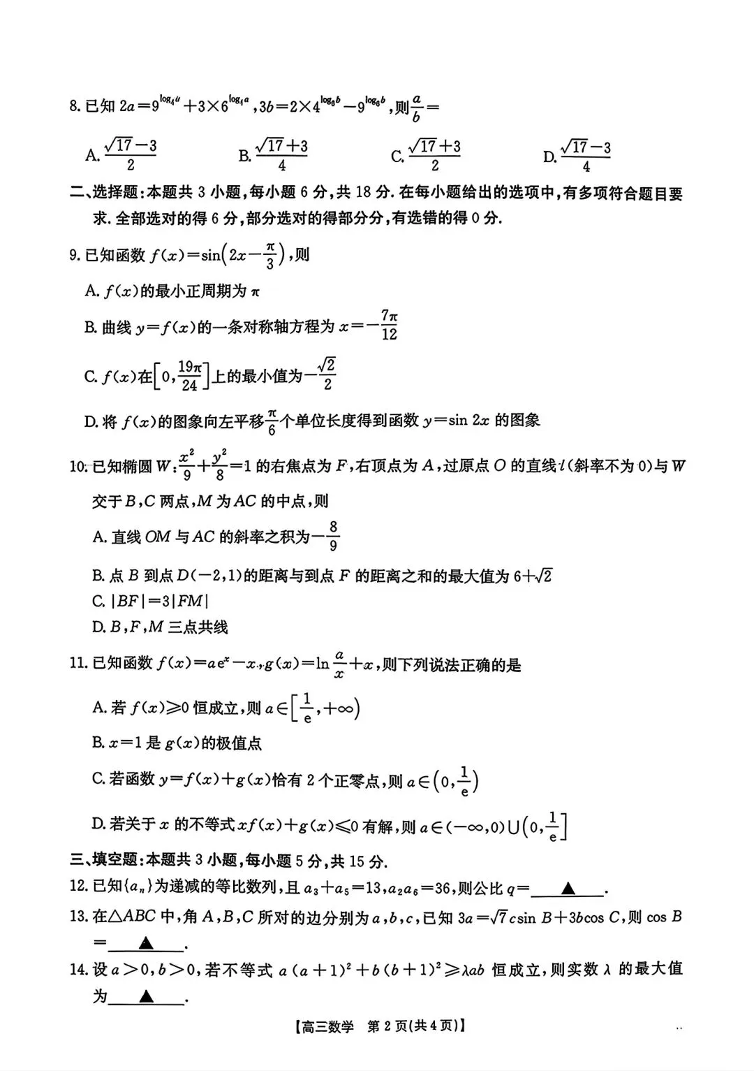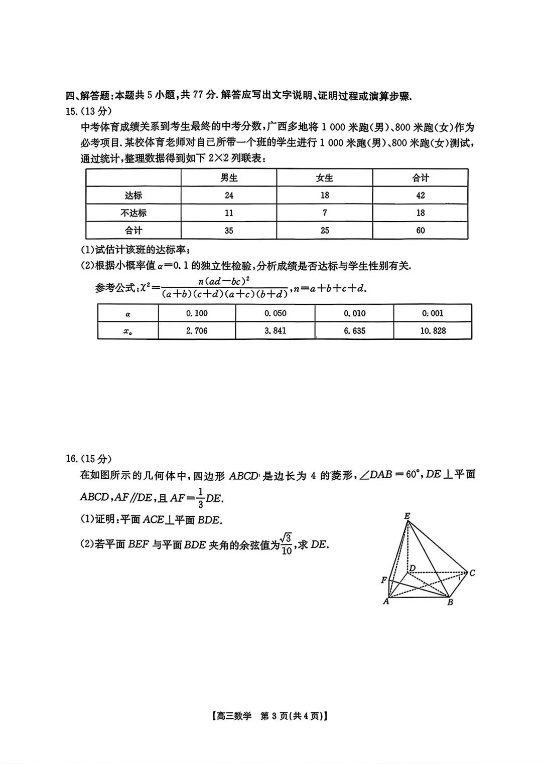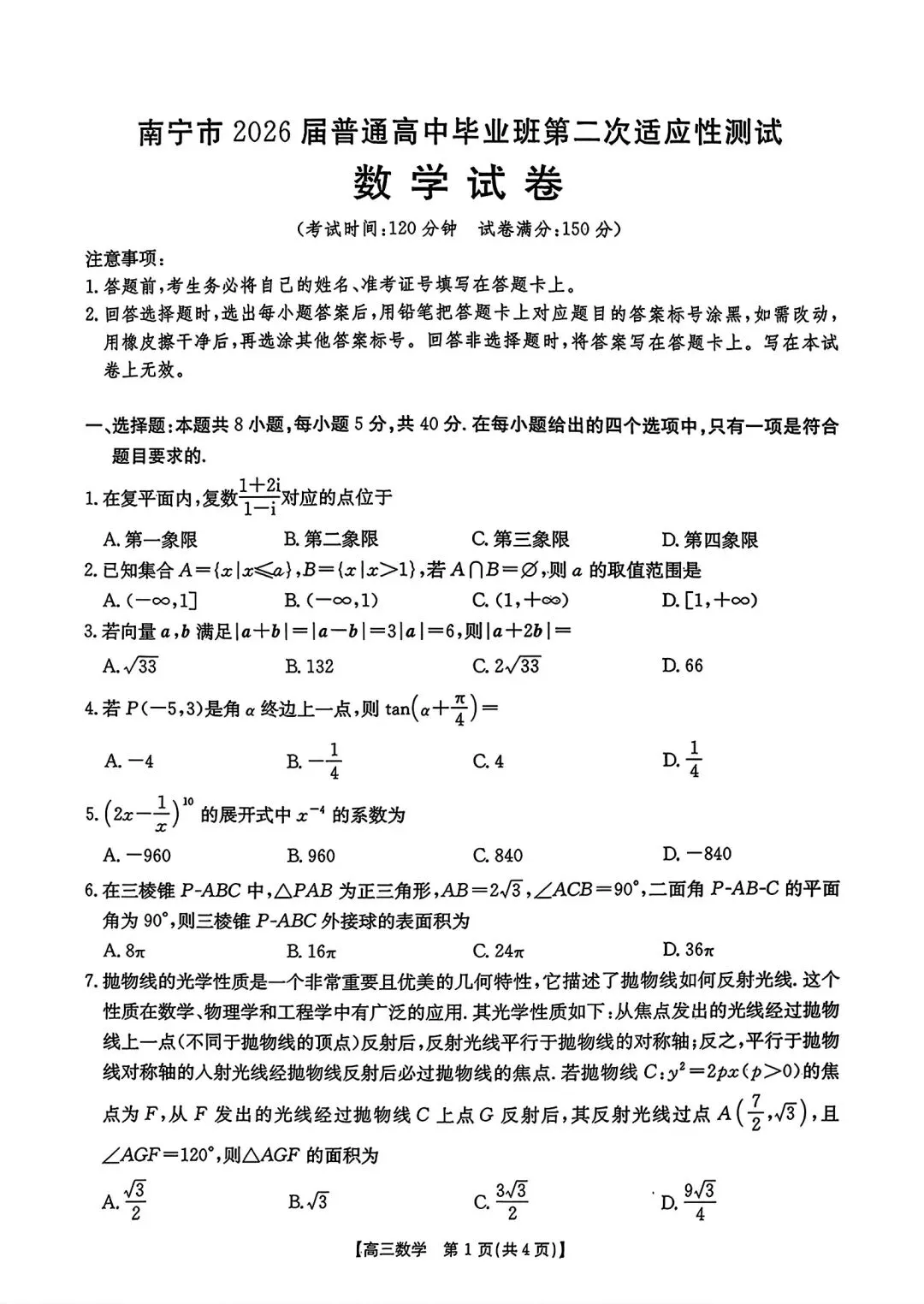 2026南宁市高三二模数学试题