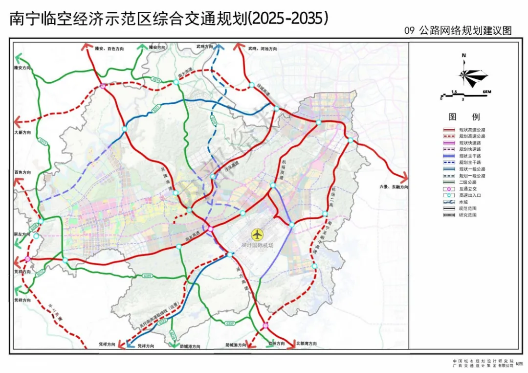 作为南宁市“一体两翼”发展格局的重要西翼,南宁临空经济示范区是全市对接东盟、发展临空经济、推动跨境产业融合的核心载体。《规划》立足面向东盟的金融开放门户南宁核心区定位,系统谋划未来十年交通发展蓝图,既着力补齐区域交通短板、完善全域交通网络,也为临空经济示范区与五象新区核心区、江南区联动发展筑牢交通根基。