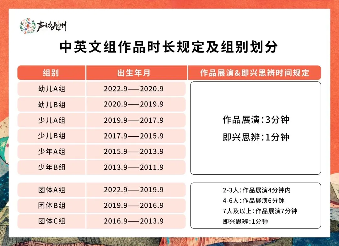 1、各组别分设中英文单人组和多人组。