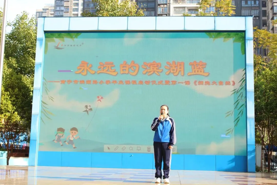 南宁市滨湖路小学教育集团毕业课程“永远的滨湖蓝”才刚刚翻开序章,前方会有更美的风景等待孩子们去遇见,更多的挑战等待他们去超越。未来三个多月里,学校将陆续开展《悦“读”校园》《走进中学》《毕业大课堂》等一系列毕业课程活动,展现滨湖学子强健的体魄和坚韧的内心,去拥抱人生的每一段旅程。