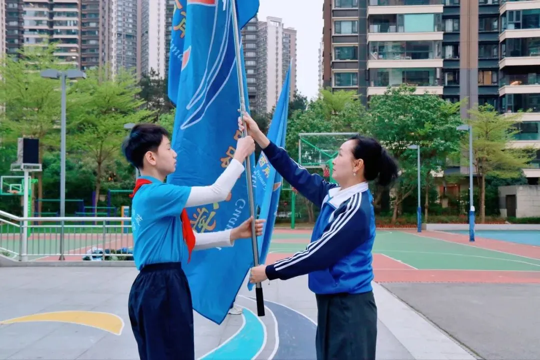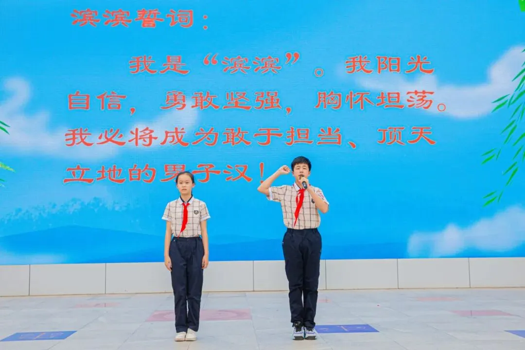 学生代表迈着坚定的步伐,擎起校旗,带领滨滨蓝蓝庄严宣誓。铿锵有力的誓言在校园上空回荡,映衬着对未来的无限憧憬。滨滨蓝蓝们迈着矫健的步伐,带着挑战的信心,从课堂出发,奔赴大自然。