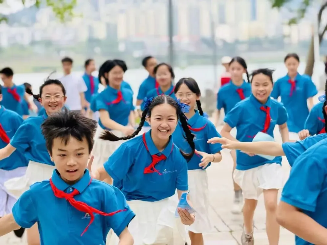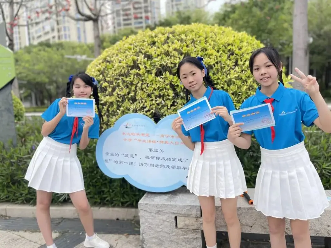 前进的步伐迈向第二关——“我爱滨湖蓝”,这次闯关像一场温暖的时光之旅。孩子们轻轻拾起散落在校园各处的记忆碎片:他们重温着熟悉的校训、校风、唱起校歌,感受着滨湖文化的滋养。当“让我们的今天赛过昨天”的呼号响起,每一个稚嫩的脸庞都写满坚定。那是传承,也是宣言:带着滨湖给予的力量,他们将勇敢地奔向更广阔的未来。